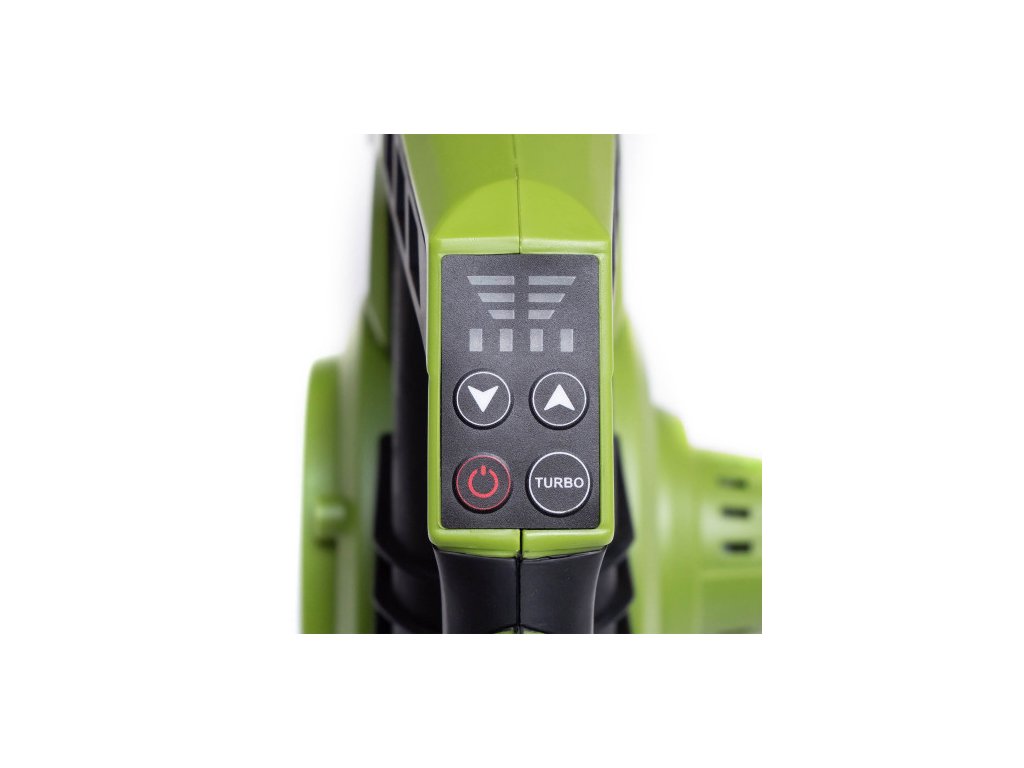 Bezúhlíkový motor, funkce mulčování Baterie: 2x20V Li-ion 4Ah/8Ah Otáčky (min.-1) 6000-16300 Max. průtok vzduchu, m3/h 610 Max. rychlost vzduchu (km/h) 270 Rychlostní stupně: 4+TURBO