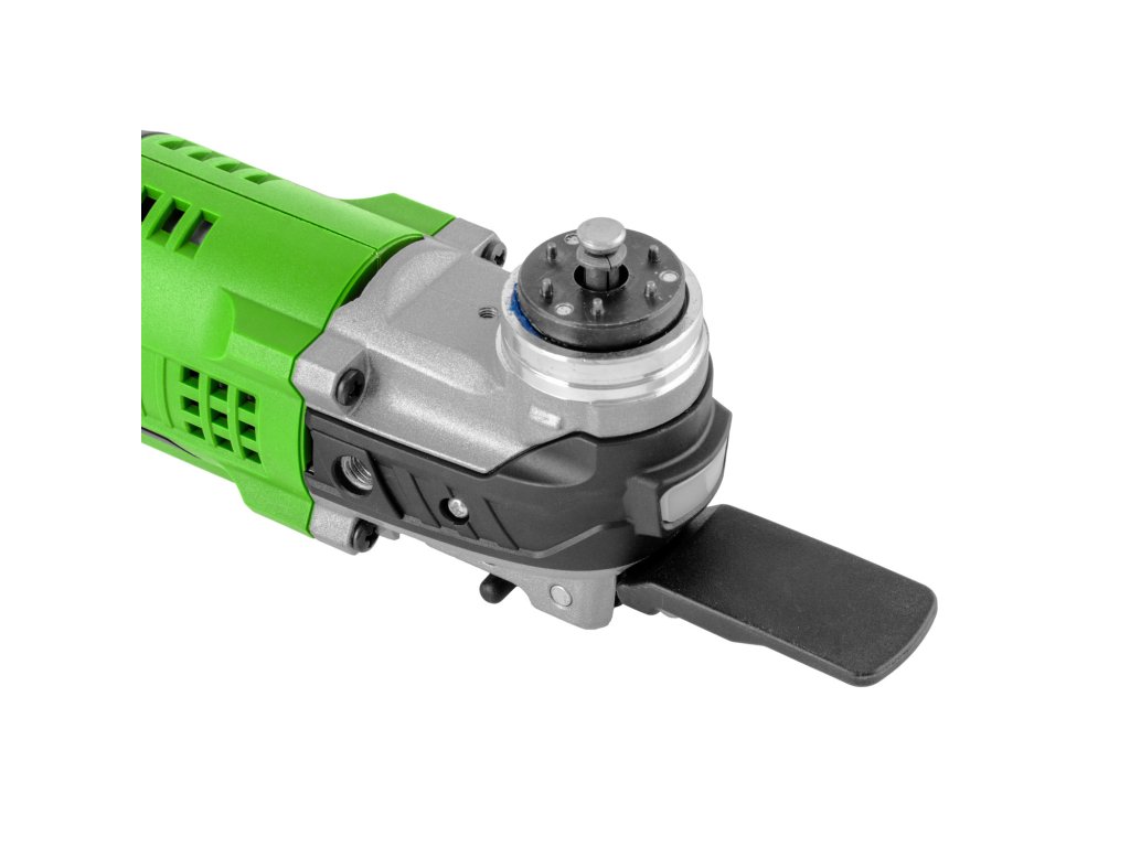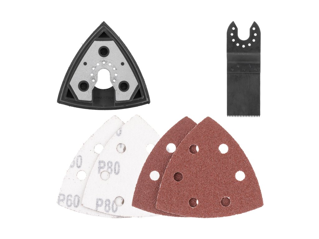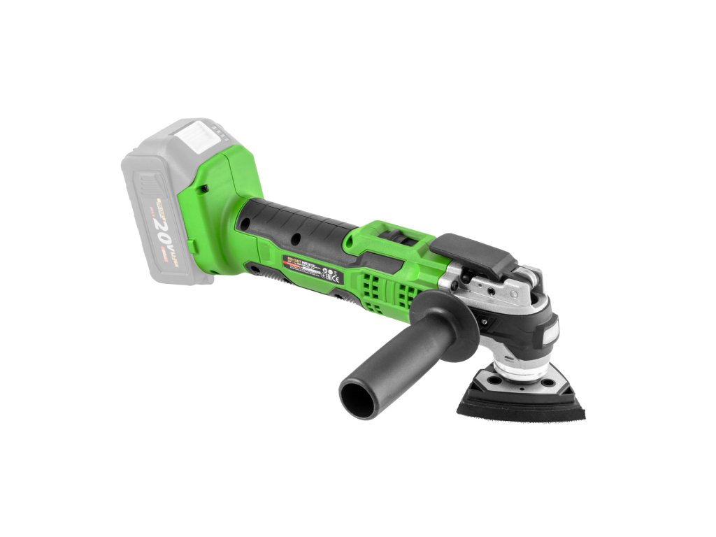 Aku multifunkční oscilační bruska (bez baterie a nabíječky) Rychlá výměna nástrojů (univerzální uchycení), regulace otáček, pozvolný rozeběh, Otáčky: 5000-19000/min Kmitací úhel vlevo/vpravo: 3° Hmotnost 1,5 kg