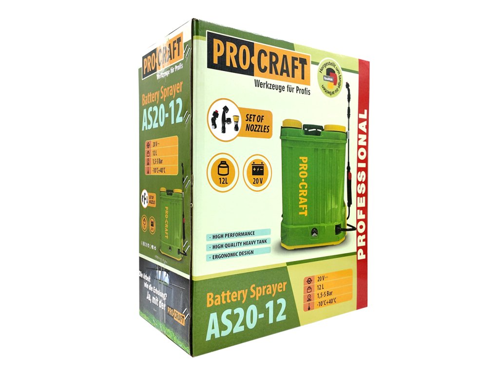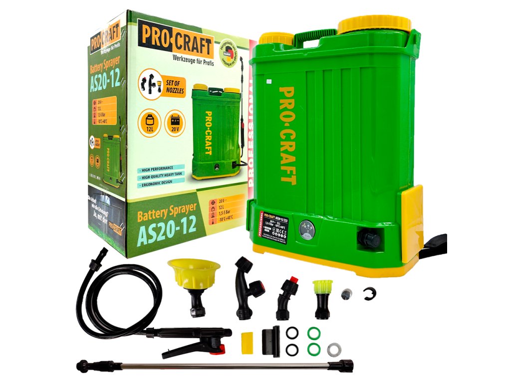AKU postřikovač Procraft AS20-12 sada s baterií 20V 2Ah a nabiječkou | SAS20-12/20-2A/20-1