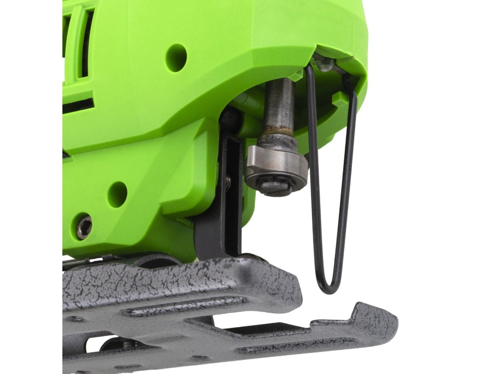 Kovová základna pro maximální stabilitu: Patka z odolného kovového odlitku zajišťuje vysokou tuhost, přesné vedení řezu a stabilitu nástroje i při práci s tvrdšími materiály.