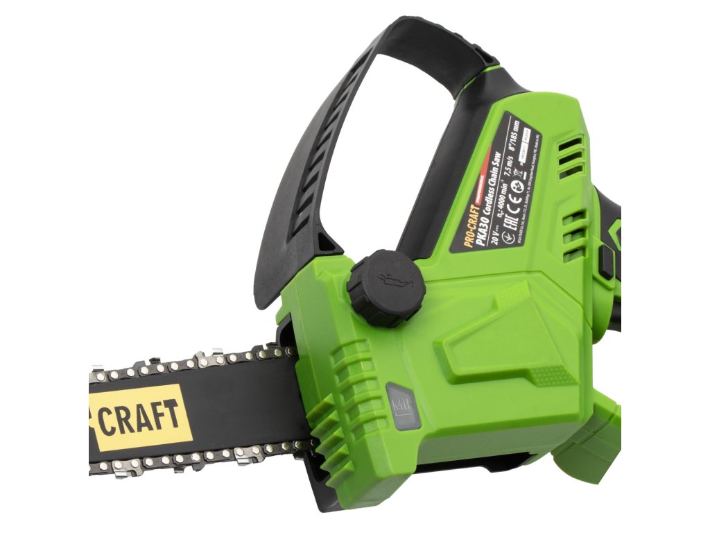 Kompaktní a lehká aku jednoruční řetězová pila Procraft PKA30 je ideálním řešením pro prořezávání větví, keřů a práce ve výškách nebo v omezeném prostoru. Je vybavena výkonným bezuhlíkovým motorem, který zaručuje dlouhou životnost a nízké nároky na údržbu. Díky ergonomickému provedení a nízké hmotnosti pouze 1,7 kg je manipulace velmi pohodlná i při delší práci.