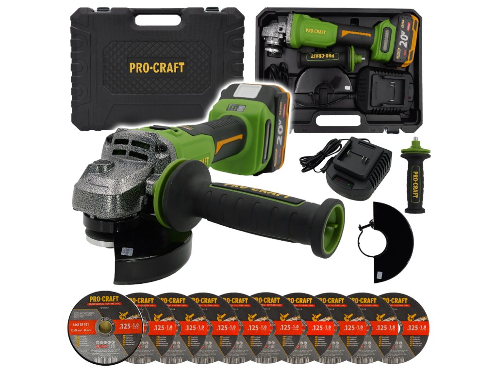 Aku úhlová bruska Procraft PWA220 + 10x řezný kotouč CD125x1.0 | SPWA220/CD125x1.0b