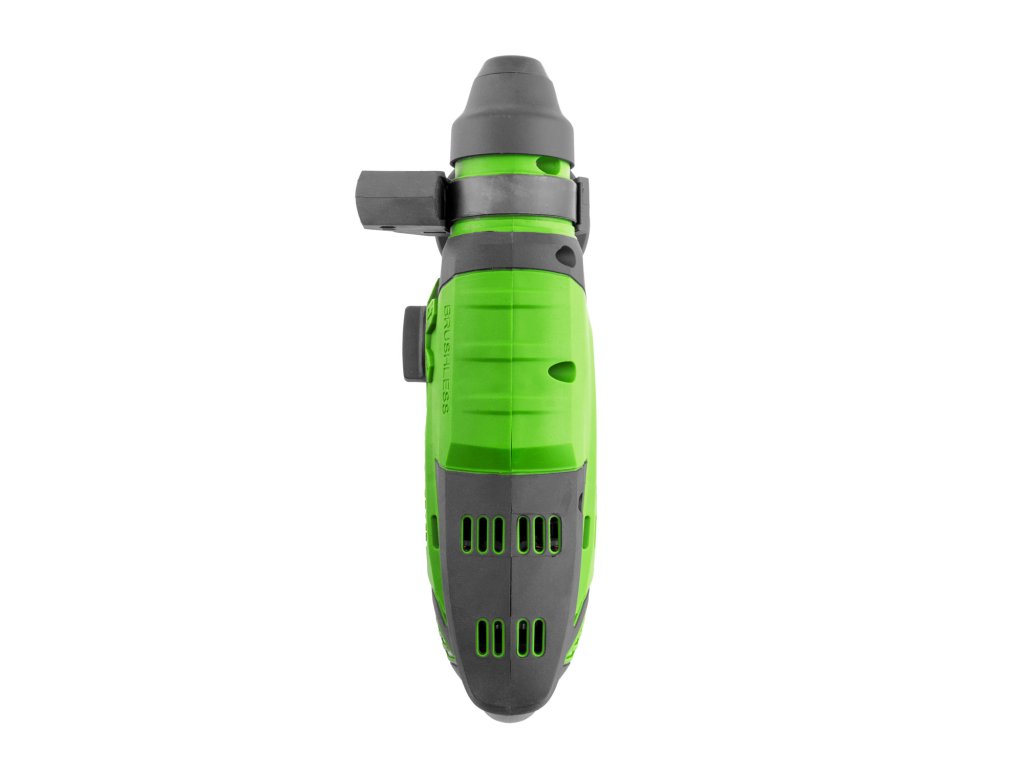 Součástí balení: přídavná rukojeť, hloubkový doraz Bezuhlíkový motor. SDS plus. Doporučená baterie: 20V 4Ah Li-ion Síla úderu: 1,7J, Počet příklepů: 0-4500/min Otáčky: 0-1400/min Vrtací výkon - beton/ocel/dřevo (mm) 22/13/28 Hmotnost: 2,6Kg