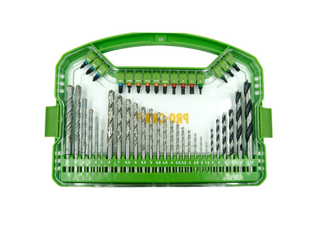101dílná sada bitů Procraft DBS-101 obsahuje široký výběr bitů pro různé aplikace.