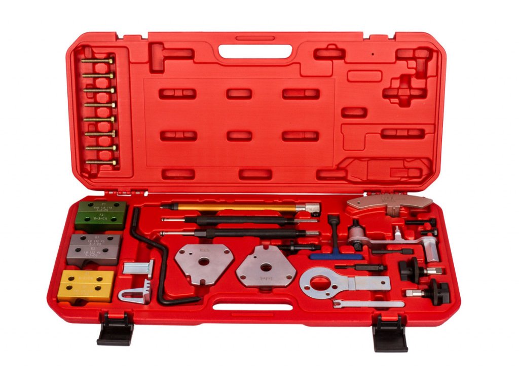 Obsáhlá sada aretačních přípravků pro automobily FIAT s benzínovými i dieselovými motory.