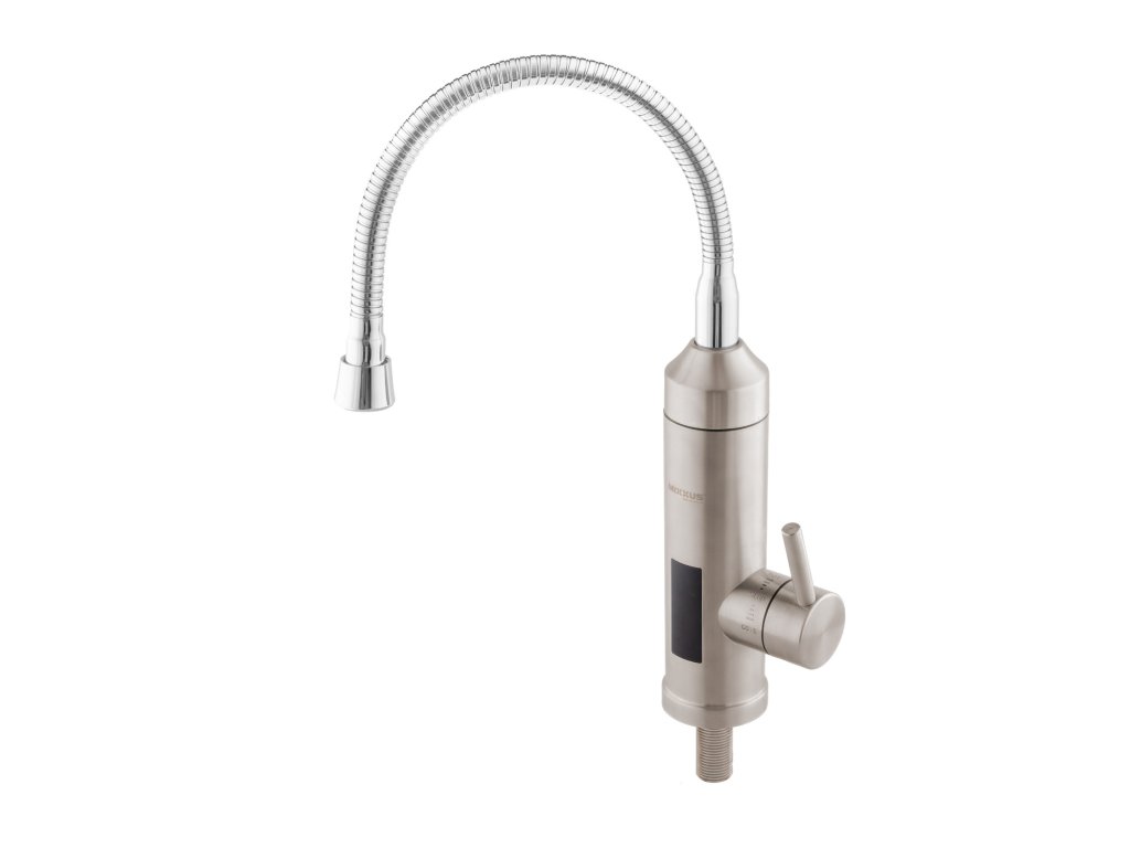 Ohřívač se ovládá pomocí praktického regulačního knoflíku, přičemž na displeji se zobrazuje aktuální teplota vody. Použití je naprosto bezpečné a pohodlné – není potřeba žádné dodatečné vedení trubek ani nákladné montáže. Skvělý pomocník pro kuchyň, koupelnu nebo rekreační objekty.