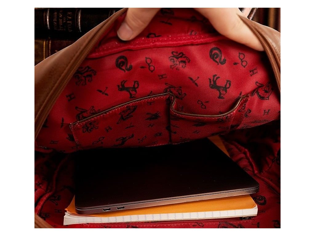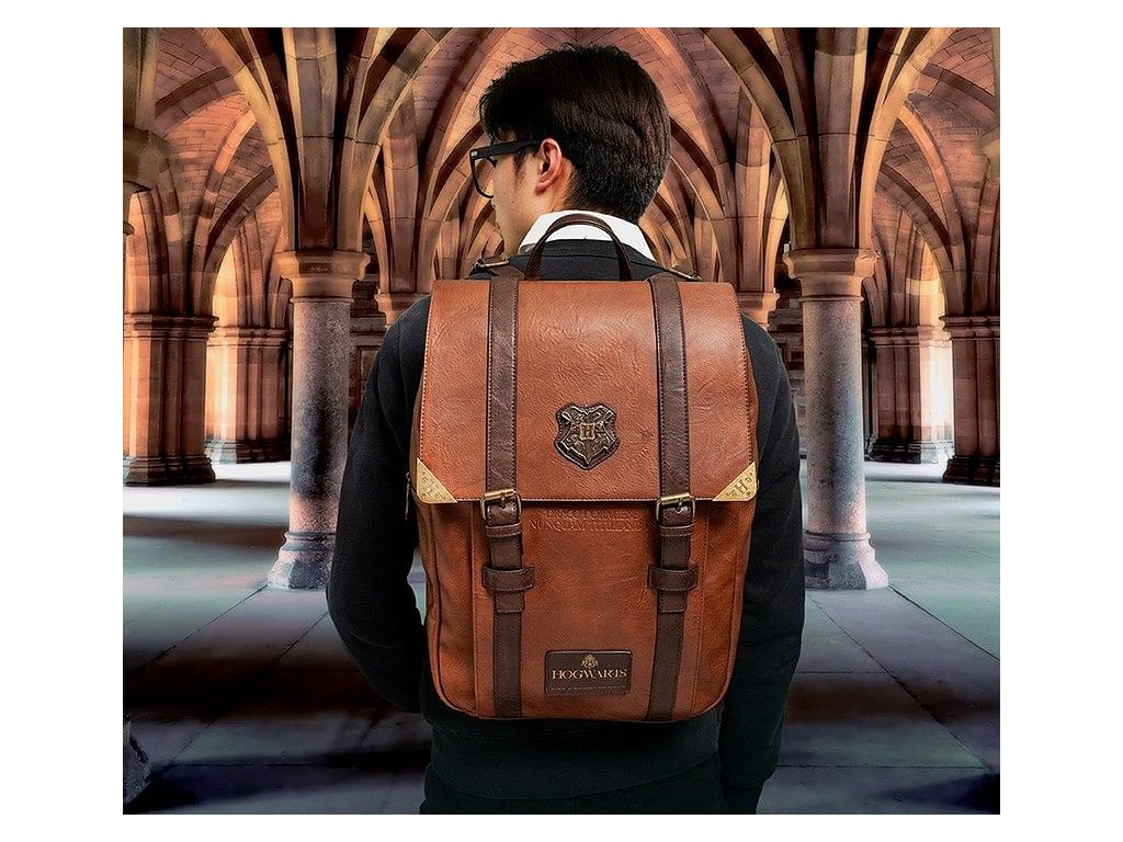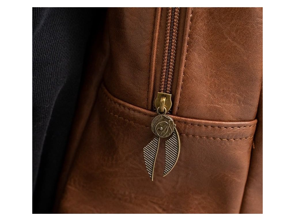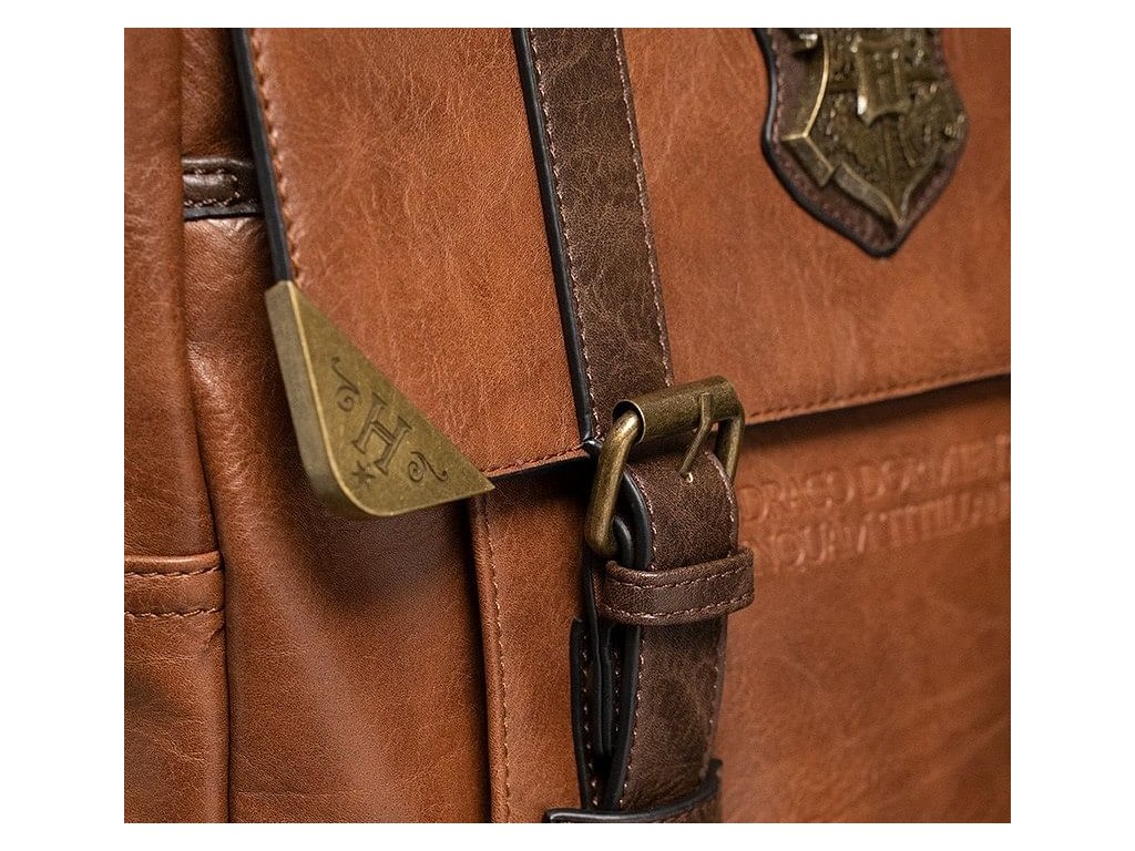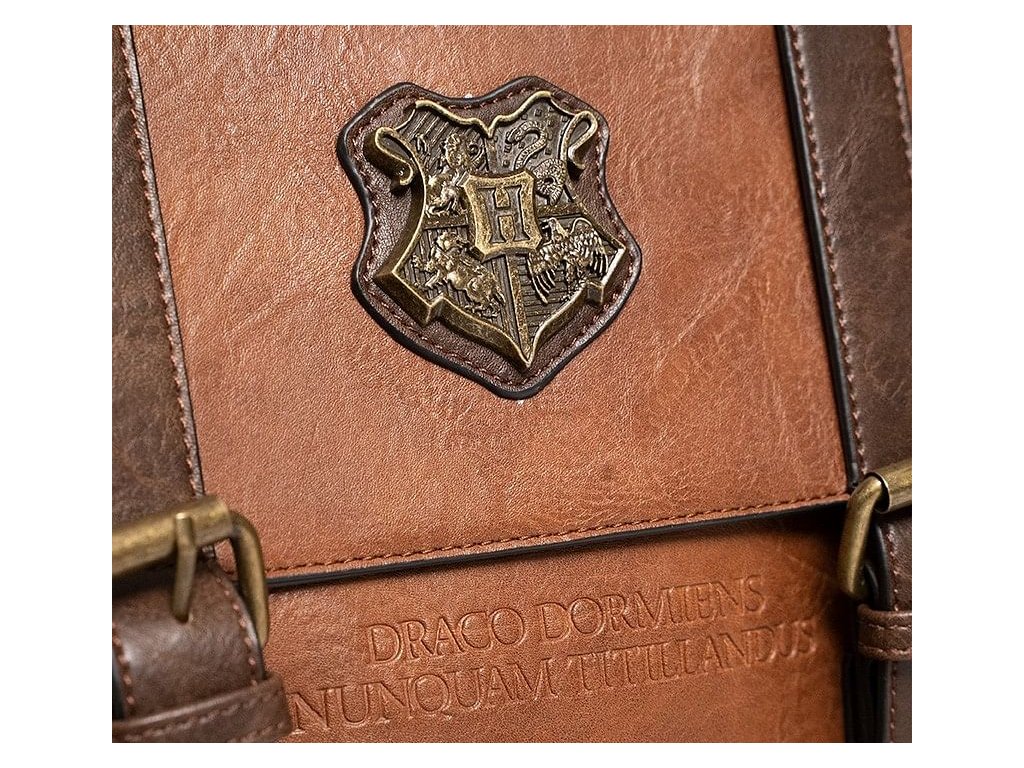 Prémiový, elegantní hnědý batoh pro fanoušky Harryho Pottera a kouzelníků z Bradavic je z umělé kůže a zdobí ho řada krásných detailů, jako zip se Zlatonkou, heslem Bradavic a podobně. Uvnitř batohu naleznete 2 velké a 3 malé úložné kapsy, součástí je přihrádka na zip pro laptop o úhlopříčce 15 . Batoh má nastavitelné popruhy a magnetické zavírání. Draco dormiens nunquam titillandus – „Nikdy nelechtej spícího draka“