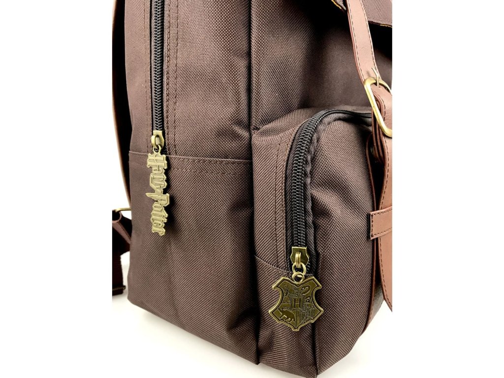 Hezký hnědý batoh potěší každého fanouška magického světa Harry Pottera a bude mu dobrým společníkem na cestách, ať už do školy, práce nebo třeba do přírody za poznáním. Batoh má přezky, zip je tvarovaný rovněž do podoby bradavického znaku.