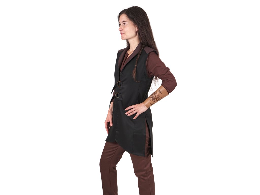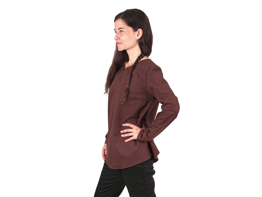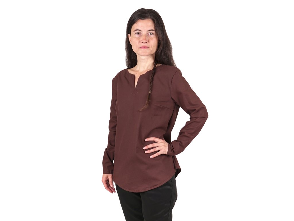Dámská hnědá tunika s dlouhými rukávy je ušita ze 100% bavlněného plátna. Tento kvalitní materiál vám poskytne maximální komfort během vašich celodenních výprav. Hodí se nejen na toulky přírodou, středověký jarmark či pro bitevní pole. Dámská tunika představuje skvělý základ pro LARP, fantasy či historické kostýmy. Zalíbila se vám tunika a váháte jak doladit ještě zbytek kostýmu? Podívejte se na naši nabídku dámských kostýmů. Dámská tunika by se skvěle hodila například k dámské vestě Calen, kterou nabízíme v černé a zelené barvě. Nepřehlédněte také nabídku dámských šatů a sukní. Pomocí kožených doplňků z našeho brašnářství vyšperkujete svůj kostým k jeho dokonalosti. Dámskou tuniku nabízíme také v barvě černé.