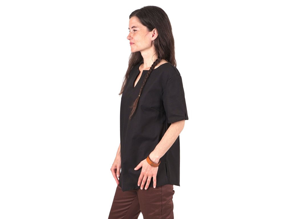 Dámská bavlněná tunika s krátkým rukávem je ideální nejen pro LARP, ale také jako základ historického či fantasy kostýmu. Kvalitní materiál (100% bavlněné plátno) vám poskytne maximální komfort během celého dne. Váháte jak vyladit celkový kostým? Podívejte se na naši nabídku dámských kostýmů a kožených doplňků z našeho brašnářství. Dámskou bavlněnou tuniku s krátkým rukávem nabízíme ve dvou barvách: černá, hnědá Více o použitém materiálu se dočtete zde: popis materiálů.