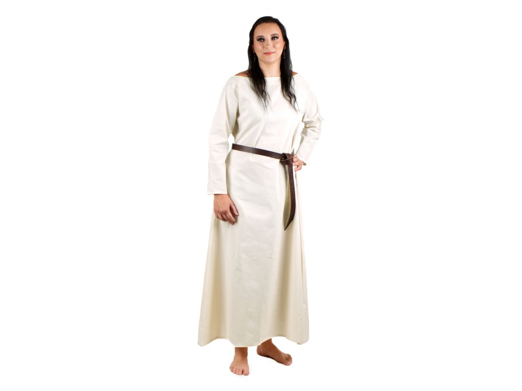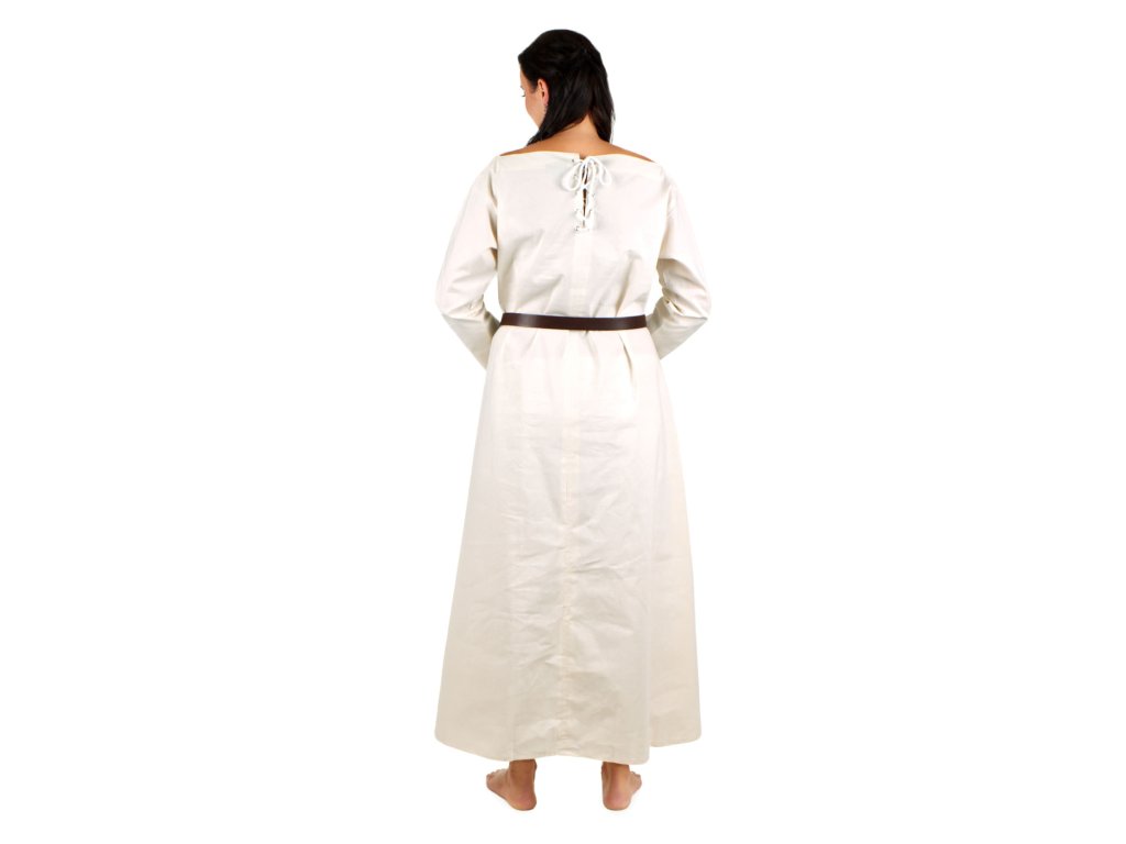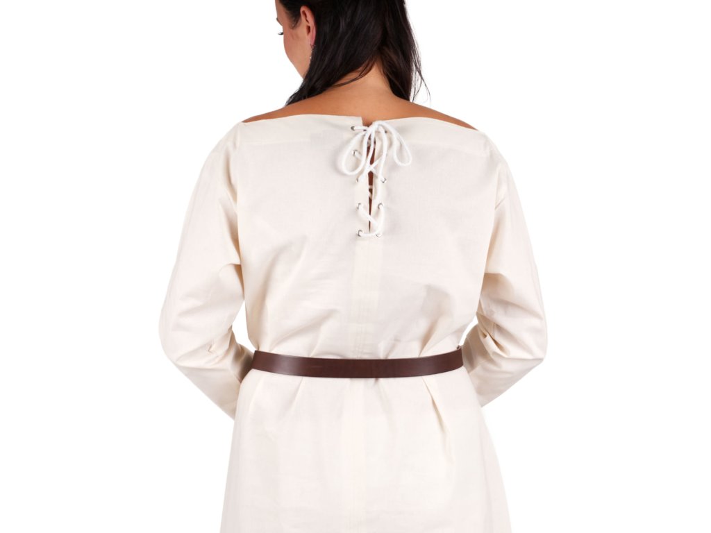 Nejen pro procházky loukou, lesem či městkou pasáží každá žena či dívka ocení lehkost a jednoduchost spodničky ze 100% bavlny. Jednoduchou spodničku krémové barvy z lehkého bavlněného plátna můžete nosit samostatně nebo ji použít jako základ dámského kostýmu na LARP, středověkého či fantasy kostýmu. Spodnička je klasického rovného střihu s lodičkovým výstřihem a na zadní straně je spodnička opatřena šněrováním, takže se dokáže krásně přizpůsobit ženské postavě. Zapojte svou fantazii a kombinujte! Na fotkách má naše divoženka kombinaci bavlněné spodničky s dámskými šaty Calanthé. Naše švadlenky pro vás však mají i další kousky, které by měly viset ve vaší skříni. Nezapomeňte na opasek! Nejen že vám dokonale zvýrazní pas, ale zároveň skvěle podtrhne celý outfit. Opasek a šaty nejsou součástí spodničky. Více o použitém materiálu se dočtete zde: popis materiálů. Spodničku šijeme i v dalších barvách: černá, zelená, bílá a modrá