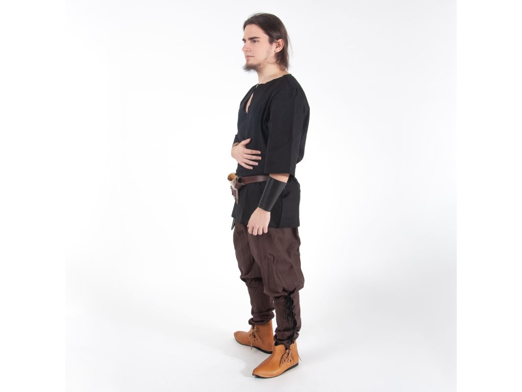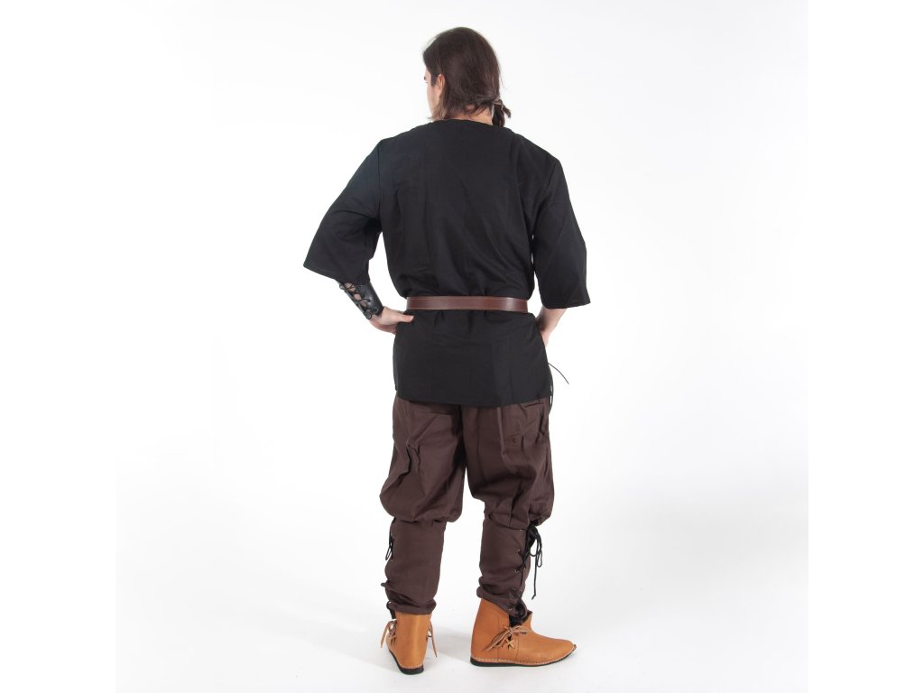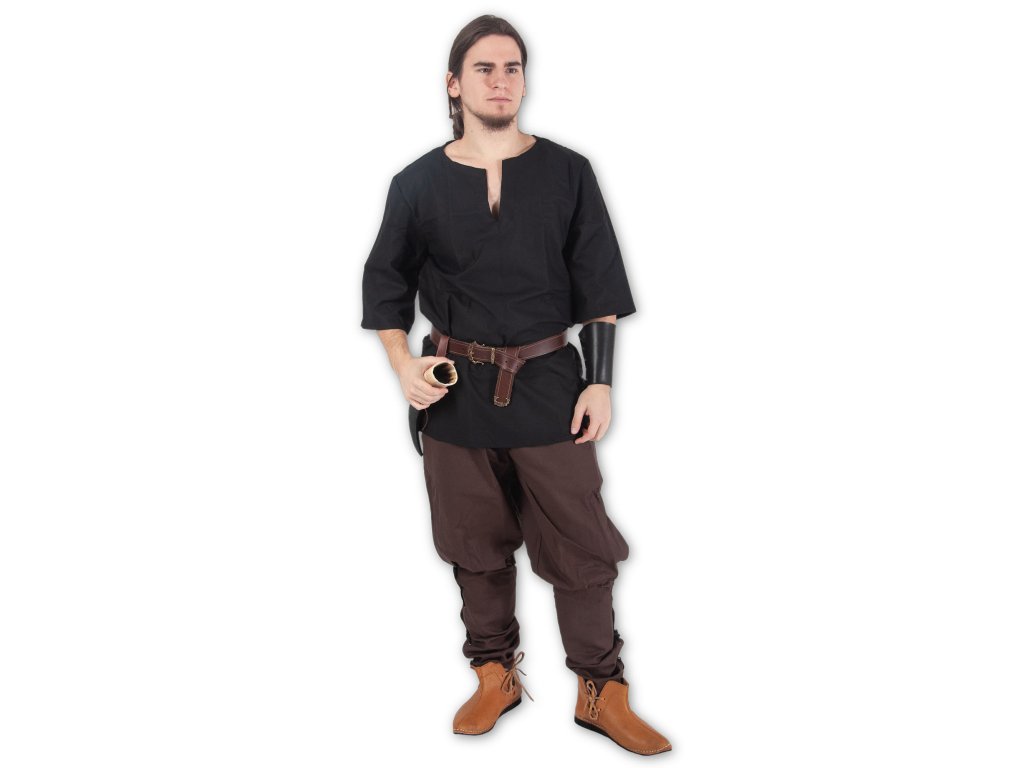 Jednoduchá košile volnějšího střihu s tříčtvrtečním rukávem. Je ušitá z kvalitního bavlněného plátna. Díky lehkosti a materiálu se v ní budete cítit příjemně i během teplých letních měsíců. Černou košili Odin snadno využijete jako základ každého historického nebo fantasy kostýmu ať už se chystáte na dřevárnu, LARP nebo historický jarmark. Můžete si ji ale pořídit i v jiných barvách. V naší nabídce najdete i košili hnědou, zelenou nebo krémovou. Pořiďte si k této slušivé košili některé z našich historických a fantasy kalhot, uděláte skvělý dojem. Chystáte se do boje a říkáte si, že košile není ta nejlepší obrana? Asi máte pravdu, co takhle se pro jistotu vybavit i koženou zbrojí z naší nabídky?