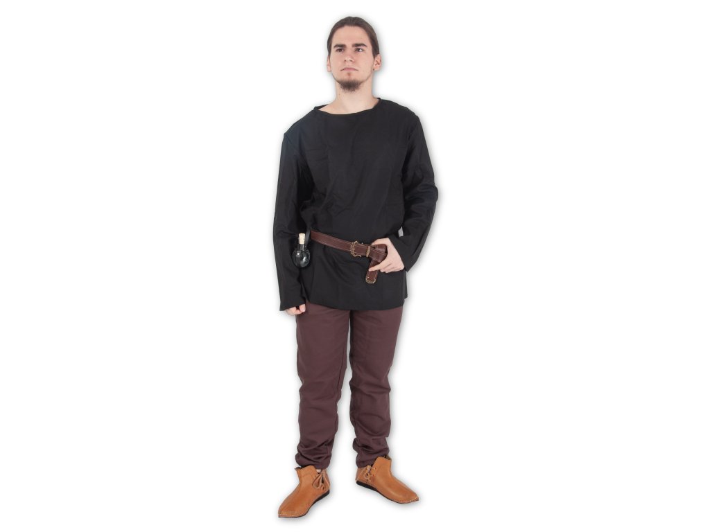 Pánská tunika s dlouhými rukávy je ušitá z kvalitního bavlněného plátna. Budete se v ní cítit příjemně po celodenní práci na poli, prodeji na středověkém jarmarku i vyhraném boji. Perfektně se hodí jako základ pro fantasy nebo historické kostýmy a díky černé barvě ji snadno využijete k různým příležitostem. Zalíbila se vám tunika a potřebujete doladit ještě zbytek kostýmu? Podívejte se na náš výběr historických a fantasy kalhot. Nezapomeňte také na pořádný opasek a jestli chcete kostým pořádně vymazlit, prohlédněte si naši nabídku historické obuvi.