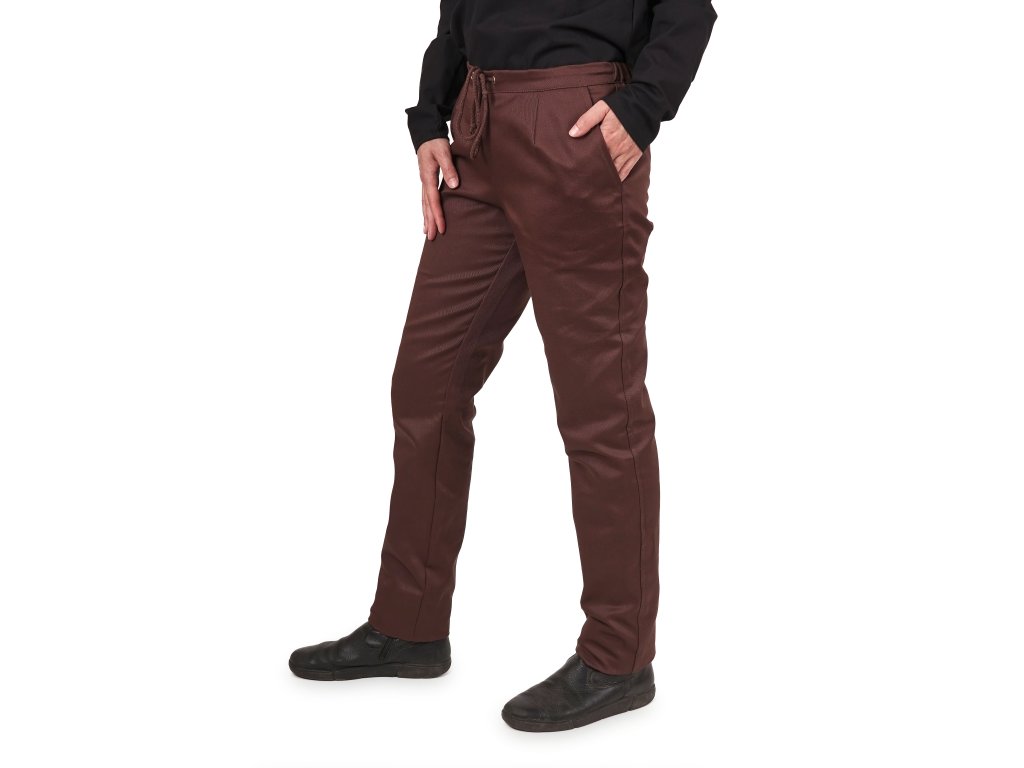 Dámské bavlněné kalhoty rovného střihu oceníte jako doplněk pro každý kostým na LARP, pokud hledáte alternativu místo sukně či šatů. Kalhoty jsou ušity z kvalitního a pevného bavlněného plátna keprové vazby (245 g/m²). Dvě praktické kapsy jsou samozřejmostí. Vejde se do nich jak pár zlaťáků, tak i nějaký ten kapesníček pro případného nápadníka. Jednoduchost a pohodlný střih kalhot oceníte nejen pro LARP, ale také při běžném nošení. V nabídce máme kalhoty také v černé barvě. Kalhoty se utahují v pase pomocí šňůrky a navíc je zadní díl opatřen gumou, aby se kalhoty perfektně přizpůsobily každé krásné postavě. Pokud chcete svůj pas vystavit více na obdiv, mrkněte na naši nabídku kožených opasků. Podle potřeby jsme schopni jejich délku upravit na vaši míru. Nezapomeňte si pořídit ke kalhotám i nějakou bavlněnou blůzu či halenku. Modelka na fotkách je vysoká 168 cm a má oblečené kalhoty vel. S.