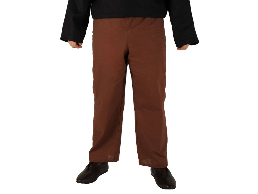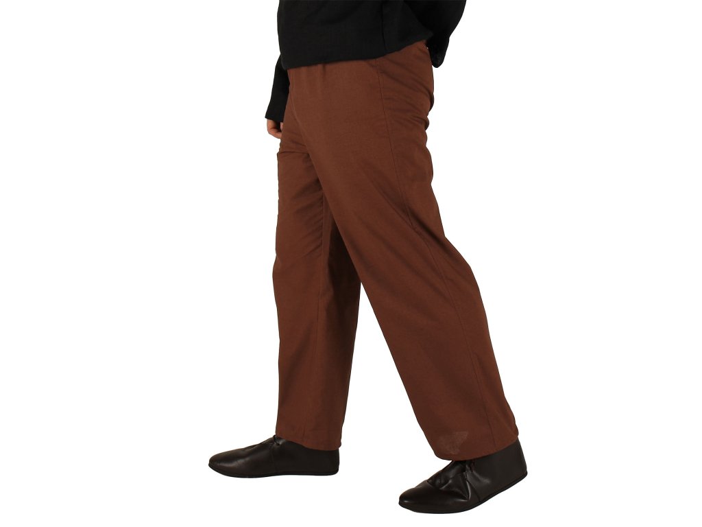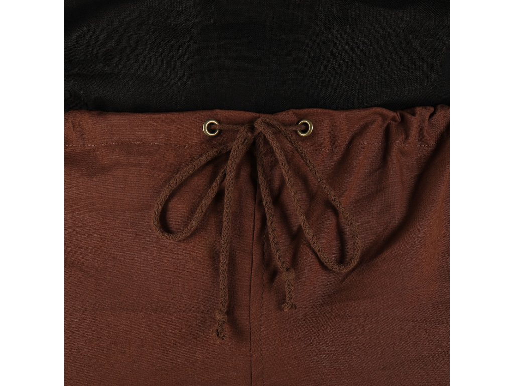 Dlouhé kalhoty inspirované starogermánským střihem (kalhotami, které byly nošeny kelty od starověku po dvanácté století), jsou volné, v pase nabrané a stažené šňůrkou. Kalhoty si můžete pořídit v černé i hnědé barvě. Materiál kalhot si můžete zvolit ze dvou variant: – bavlněné plátno, které je lehké a vzdušné. – kepr, je také z bavlny, ale jde o hrubší a pevnější tkaninu. Míry potřebné k objednávce: obvod pasu a boků, požadovaná délka kalhot. Jak se správně měřit Šijeme dle vašich přání Popis materiálů
