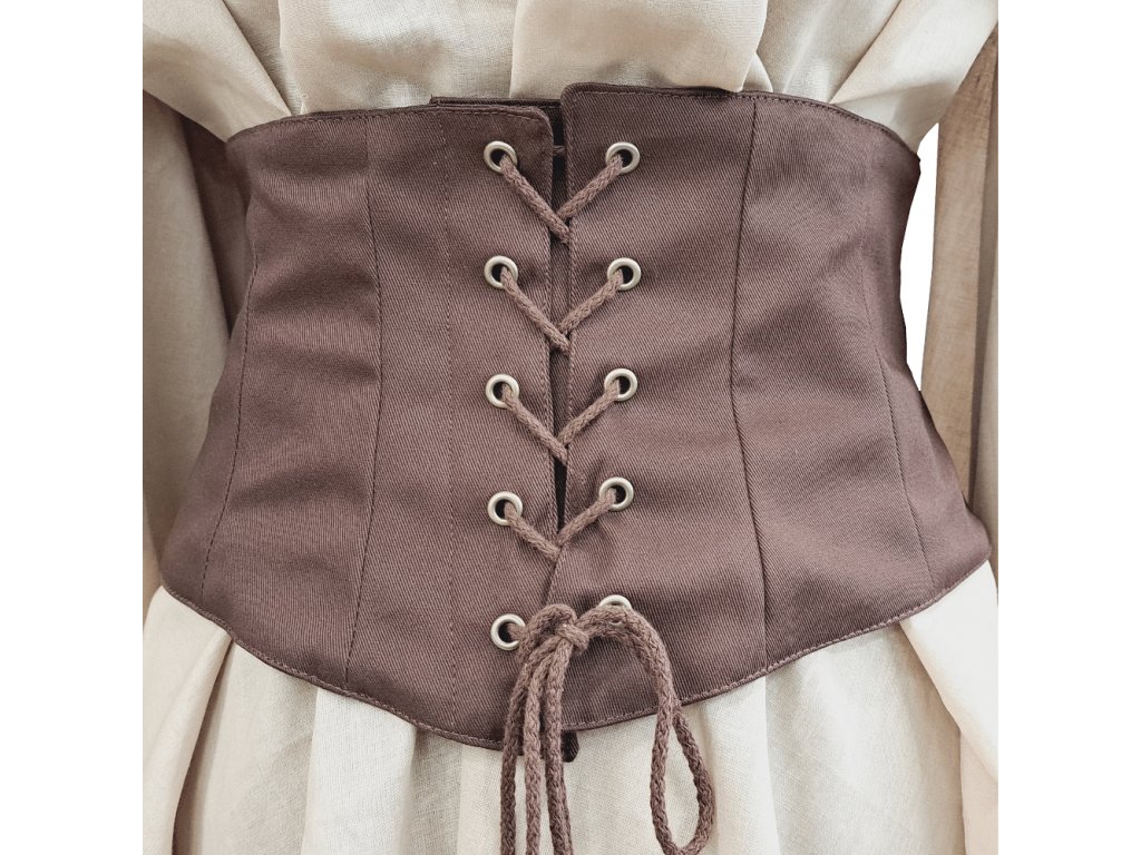 Získej úchvatný a elegantní vzhled s naším nádherným hnědýmkorzetem z prvotřídního kepru (gramáž 245 g).Tento korzet je vypodšívkovaný stejným materiálem a tvar drží čtyři kostice. Náš korzet tedy není jenom módním doplňkem, ale přináší také výjimečné pohodlí. Zvýrazni svou postavu a získej nekonečný obdiv! Naše korzety jsou navrženy s ohledem na praktičnost a pohodlí, což z nich činí nejen skvělý doplněk ke kostýmu, ale také praktický a pohodlný oděv pro každou příležitost. Neváhej tedy přidat do svého šatníku tento unikátní kousek, který pozvedne tvé sebevědomí na úplně novou úroveň. Korzety z naší dílny nejsou prostě dalším produktem na trhu. Jsou výsledkem pečlivé práce a lásky, kterou vkládáme do každého našeho výrobku. Oblečení prochází pečlivou kontrolou kvality, abychom ti mohli garantovat, že dostaneš pouze ten nejlepší produkt. Naše dílna není jen pracovištěm, je to místo, kde se tvé sny o vlastním stylu stávají skutečností. Buď připravena na každou výzvu a zaujmi svým nezaměnitelným stylem díky keprovému korzetu, který láká dotekem historie. Korzet vypadá skvěle například se Středověkými béžovými nebo zelenými šaty Merida.
