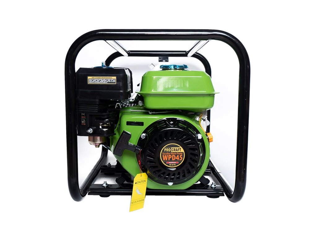 Vodní kalové čerpadlo Procraft WPD45 je určeno k odčerpání kalné vody s příměsí pevných částí z nádrže, rybníku, jezírka nebo ze sklepa při povodni. Díky speciálnímu povlaku oběžného kola a čerpadla zvládne odsát vodu kontaminovanou chemikáliemi, nebo ropnými látkami. Čerpadlo se dá lehce rozdělat díky ručním "T" šroubům a vyčistit od nanesených nečistot. Stroj je poháněn čtyřtaktní motorem s ventilovým rozvodem OHV. Který zaručí výkonnost 45 krychlových metrů z hloubky až 7 m do výšky až 25 m. Robustní ochranný rám umožňuje použití čerpadla v jakýkoliv podmínkách a taky usnadňuje transport. Součástí dodávky je klíč na svíčku, 3 hadicové svorky, sací hrdlo, převlečná matice, sací koš a těsnění. Balení karton.