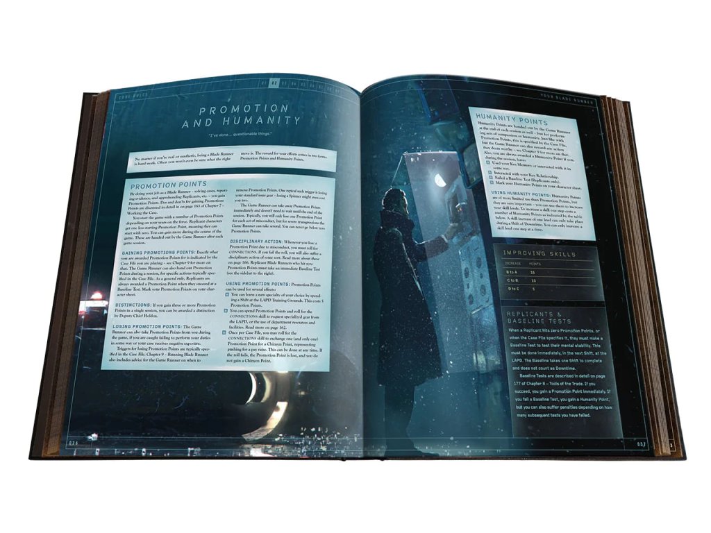 Příručka Blade Runner RPG Core Rulebook obsahuje pravidla pro hru z prostředí kultovního sci-fi filmu. Příručka je v angličtině. This is the BLADE RUNNER roleplaying game – a neon-noir wonderland that’ll take your breath away. One way or another. An evocative world of conflicts and contrasts that dares to ask the hard questions and investigate the powers of empathy, the poisons of fear, and the burdens of being human during inhumane times. An iconic and unforgiving playground of endless possibilities that picks you up, slaps you in the face, and tells you to wake up. Time to live. Or time to die. The official Blade Runner RPG will propel players into the streets of Los Angeles as Blade Runners with unique specialties, personalities – and memories. The core game and its line of expansions will push the boundaries of investigative gameplay in tabletop RPGs, giving players a range of tools to solve an array of cases far beyond retiring Replicants. Beyond the core casework, the RPG will both in setting and mechanics showcase key themes of Blade Runner – sci-fi action, corporate intrigue, existential character drama, and moral conflict – that challenge players to question your friends, empathize with your enemies, and explore the poisons and perseverance of hope and humanity during such inhumane times. The rules of the game are based on the acclaimed Year Zero Engine, used in award-winning games such as the ALIEN RPG, Tales From the Loop and Forbidden Lands, but further developed and uniquely tailored for Blade Runner.