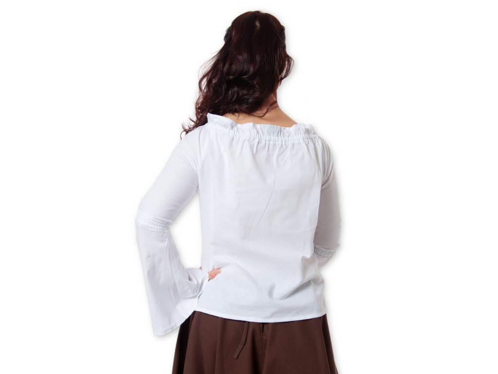…je pohodlná středověká dámská blůza ušitá z bílého plátna (100% bavlna). Hodí se k historickým či fantasy dámským kostýmům, zazáříte s ní na LARPu či historické události. Proč Blůza Verona? kvalitní 100% bavlna - příjemné nošení po celý den vyrobena pečlivě s v naší krejčovské dílně má velice pohodlný střih Maximálně pohodlná Blůza Verona je opatřená gumičkami kolem loktů a výstřihu – můžete si ji nastavit tak, abyste se vždy cítili pohodlně. Lze ji tak snadno využít jako univerzální součást různých kostýmů. Čím doplnit kostým? Vyberte si k blůze Verona některou z našich historických sukní a uděláte skvělý dojem. Už máte hotový kostým, ale chcete ho ještě trochu vylepšit? Prohlédněte si naši nabídku historických a fantasy šperků.