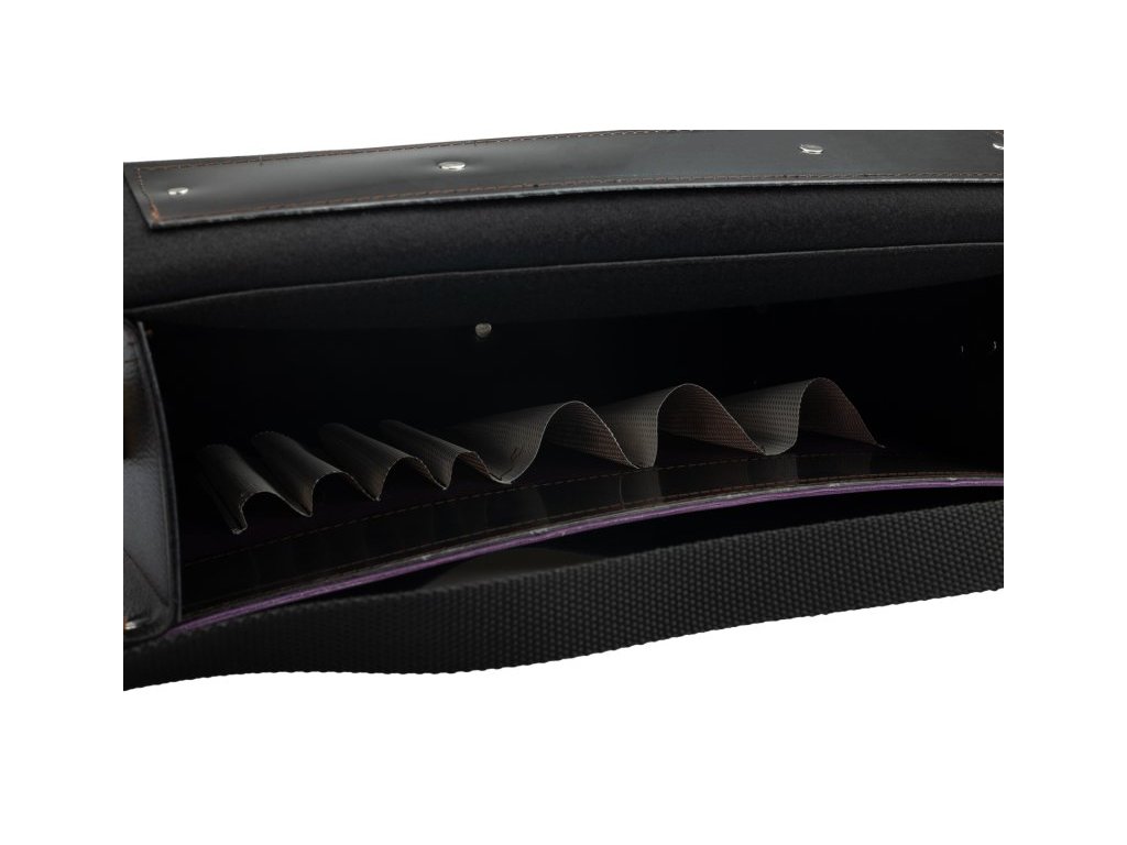 Elektrikářská brašna z umělé usně , vhodná pro středně těžké nářadí, kde si nářadí zasunete do přihrádek. Brašna je ušita speciální PES nití Amann, nosnost nitě je 12 kilo, švy jsou v exponovaných místech ještě nýtovány. Prvky: držadlo, popruh přes rameno, ocelová výztuha hřbetu. Vnitřní konstrukce: 1 plochá kapsa na dokumenty, přihrádky na šroubováky a drobné nářadí. Výztuhy: dno, hřbet, boky brašny. Hlavní materiál: syntetická useň.