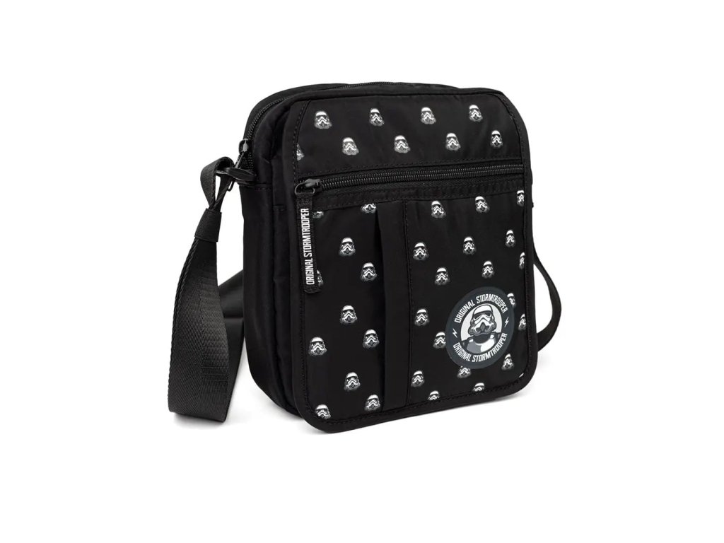 Pěkná černá brašna s grafikou bílých helem imperiálních vojáků stormtrooperů ze Star Wars má nastavitelný popruh a kromě velkého úložného prostoru na zip také několik menších kapes. Brašna je vyrobena z recyklovaného polyesteru.