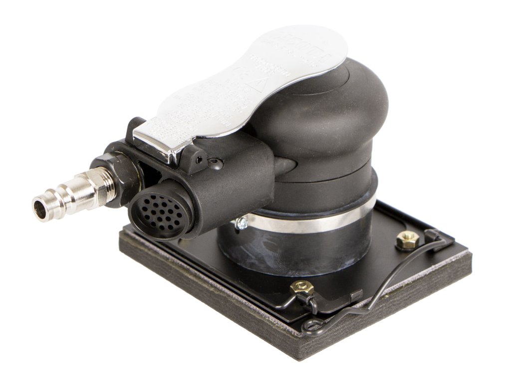 Pneumatická bruska, velikost brusné plochy 100 x 110 mm. Otáčky 10 000 ot/min. Vstup pro vzduch 1/4", výstup pro hadici: 3/8". Okružní rozměr 2,5 mm.