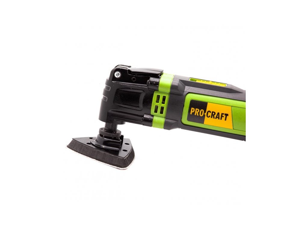 Bruska multifunkční Procraft PMT650E je určena k broušení, řezání různých materiálů. Silný motor s příkonem 400 W a otáček 21000 zaručuje vysoký brusný a řezný výkon. Funkce pozvolného rozběhu zaručí dlouhou bezporuchovou práci. Regulace otáček umožňuje nastavení optimálních parametrů při práci s různými materiály. Díky kompaktní konstrukci a nízké hmotnosti zajišťuje možnost práci ve stísněných prostorech. Rychloupínání, zajištuje rychlou výměnu nástrojů (uchycení Fein, Bosch, Extol...) Součástí dodávky je škrabka, brusné listy, plastový kufr, trojúhelníková brusná deska. Balení karton.