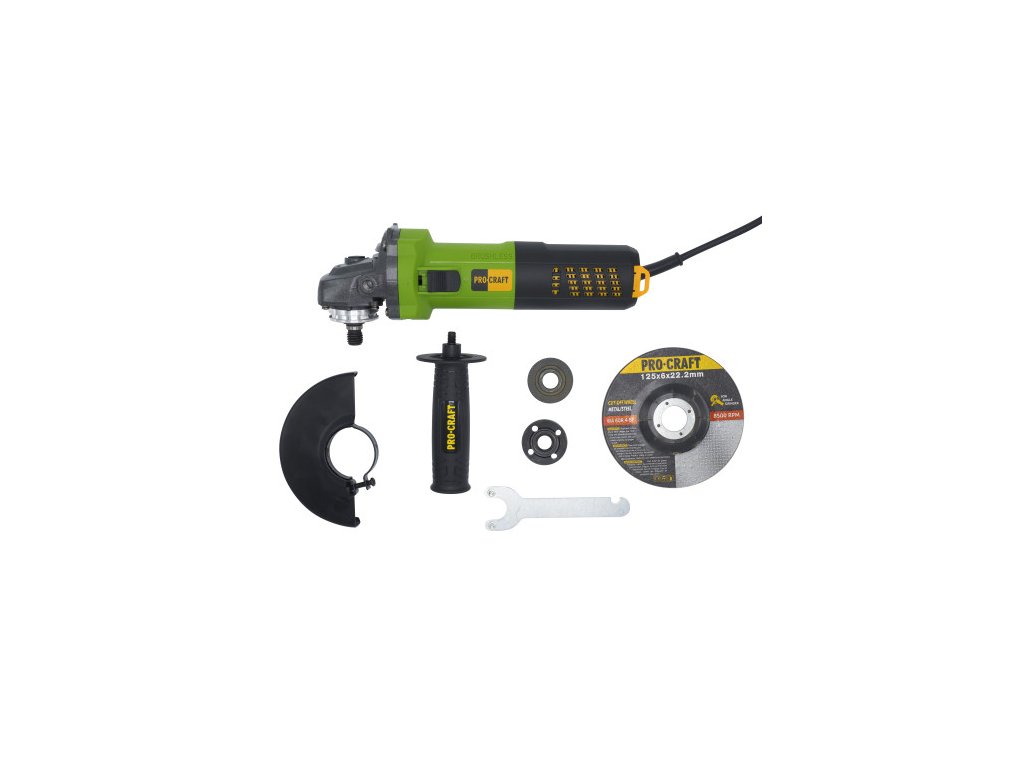 Bruska úhlová Procraft PW1550 + 10x řezný kotouč CD125x1.0b v kovovém boxu