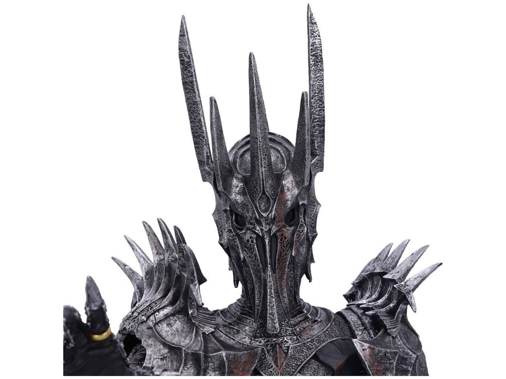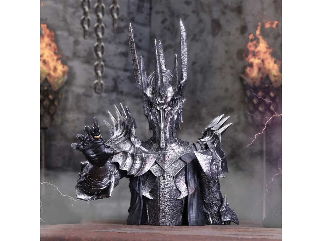 Temný pán Sauron ve své helmici a zbroji, jak ho znáte z filmového zpracování Pána prstenů. Krásná busta Saurona natahujícího se po Prstenu moci je ručně malována a bude jedinečným dárkem i ozdobou vašeho domova nebo pracovny.