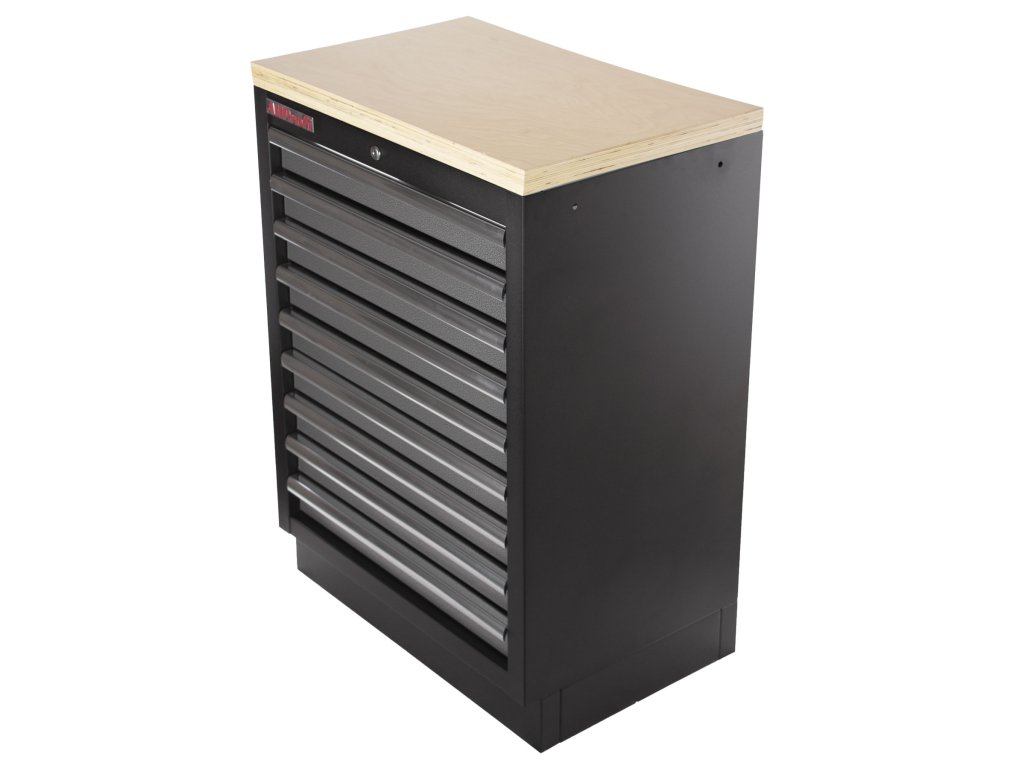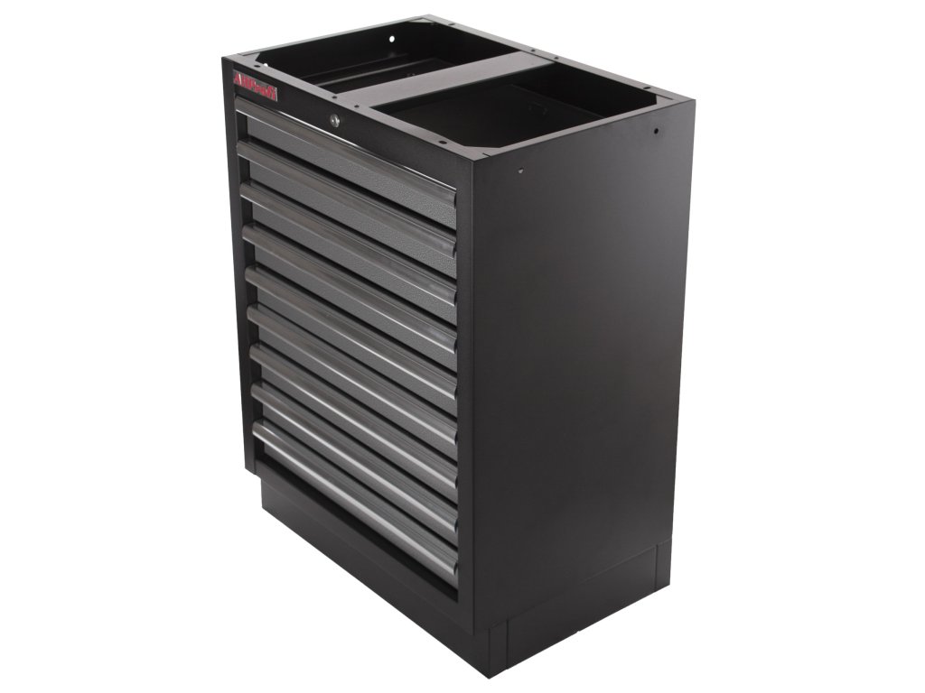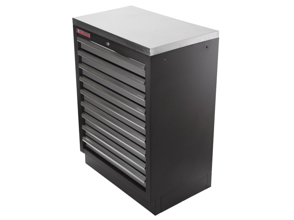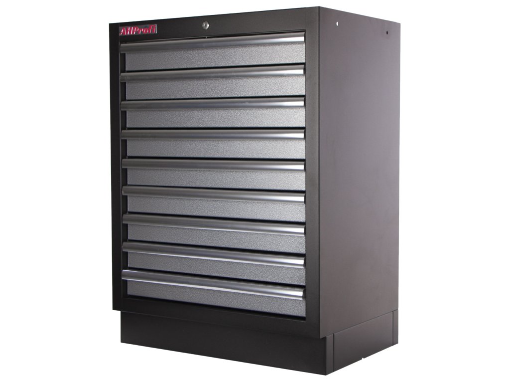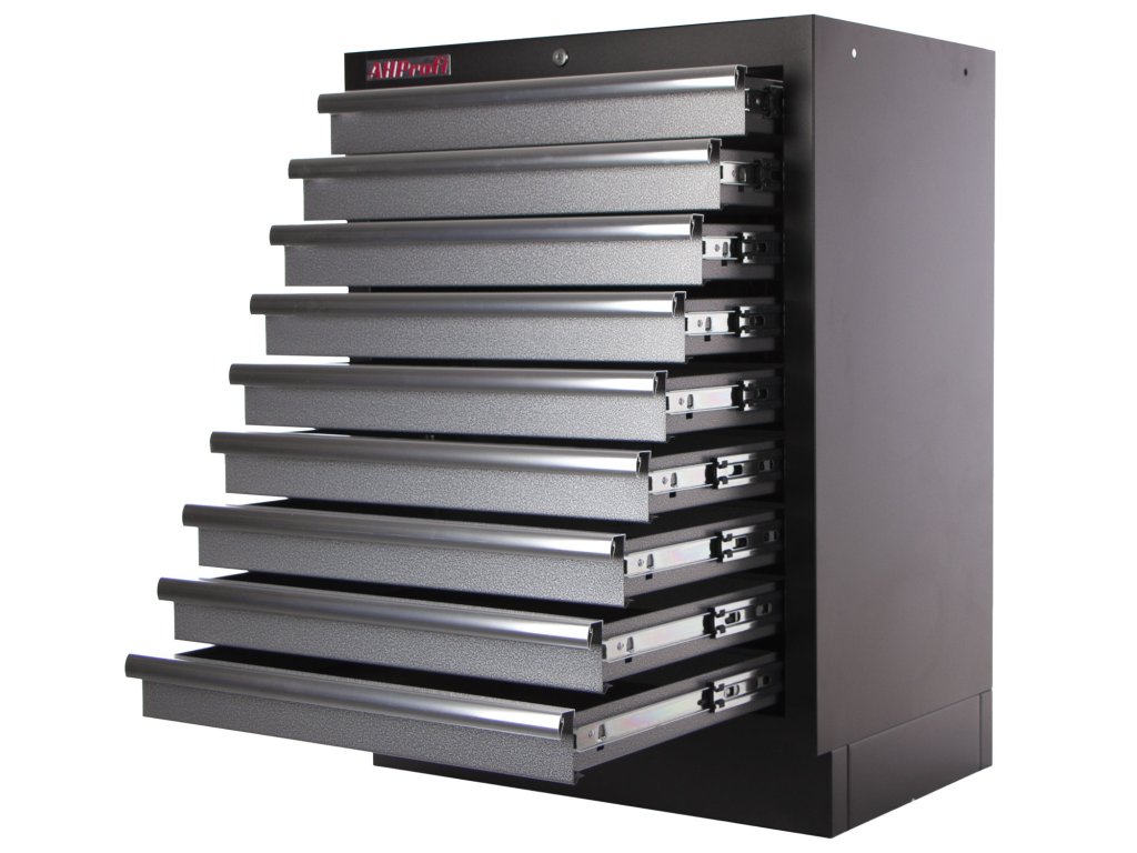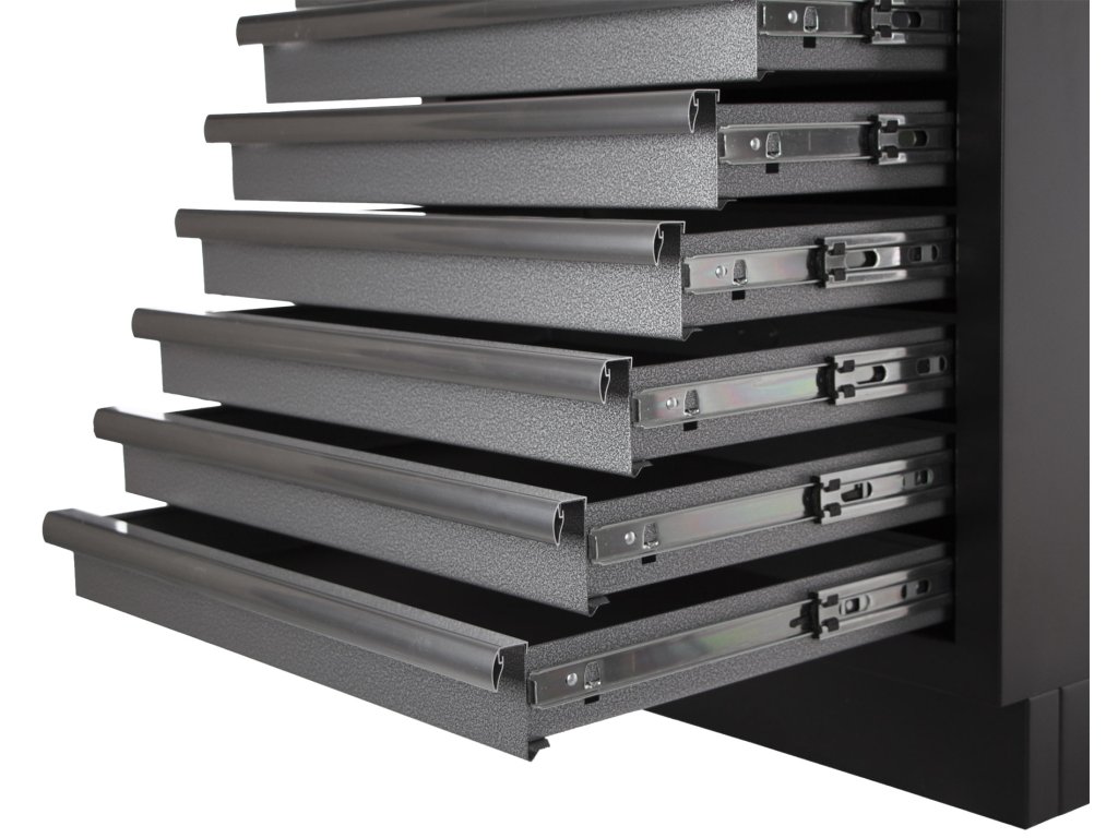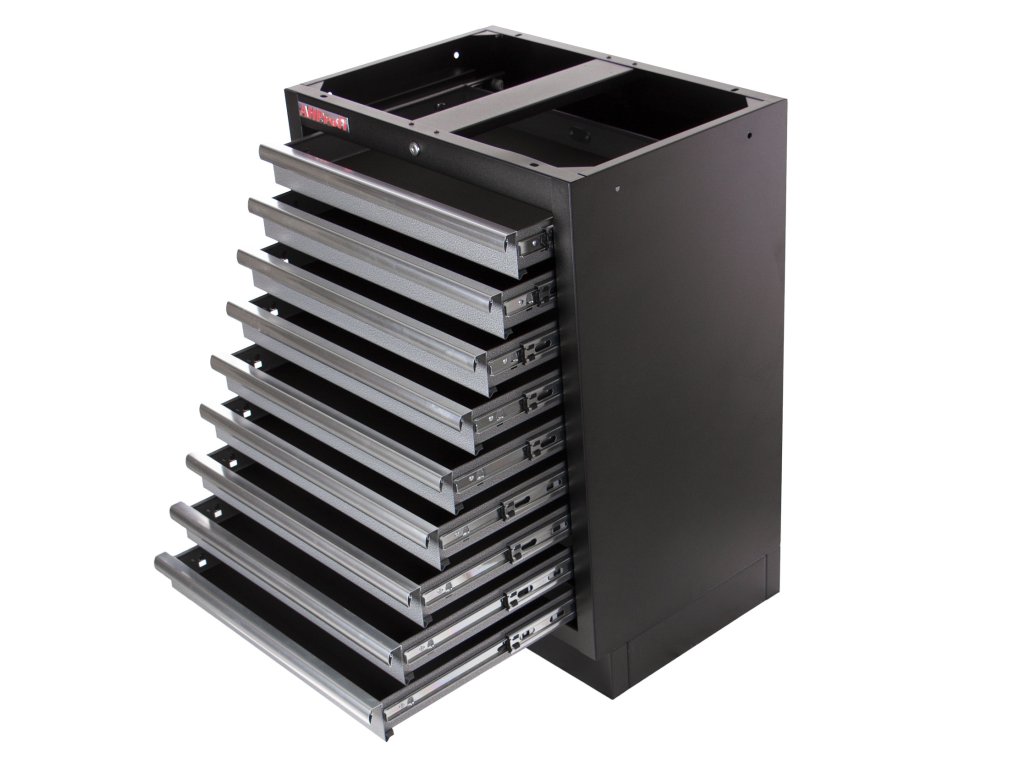 Celokovová dílenská skříň s 9-ti zásuvkami zajišťuje maximální přehled, úložnou kapacitu a odolnost i v náročném provozu.