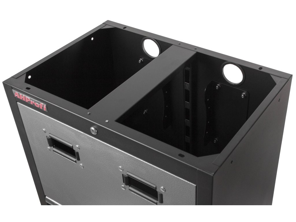 Celokovová PROFI dílenská dvoukřídlá skříňka s otvory pro uskladnění samonavíjecích bubnů na vzduch (XBA02) nebo elektřinu (12 m, 20 m).