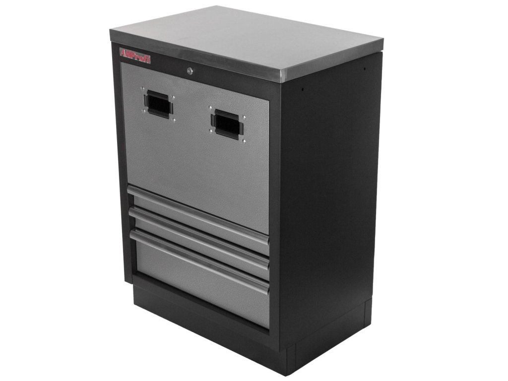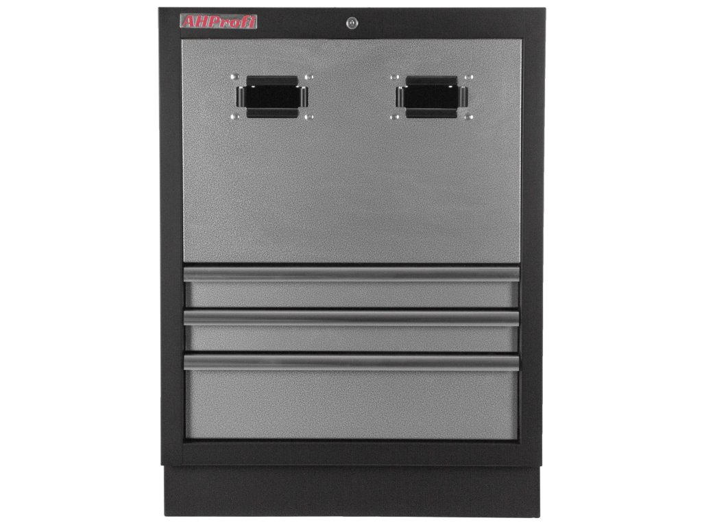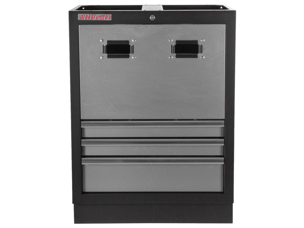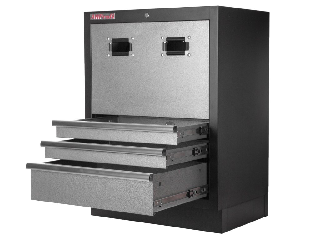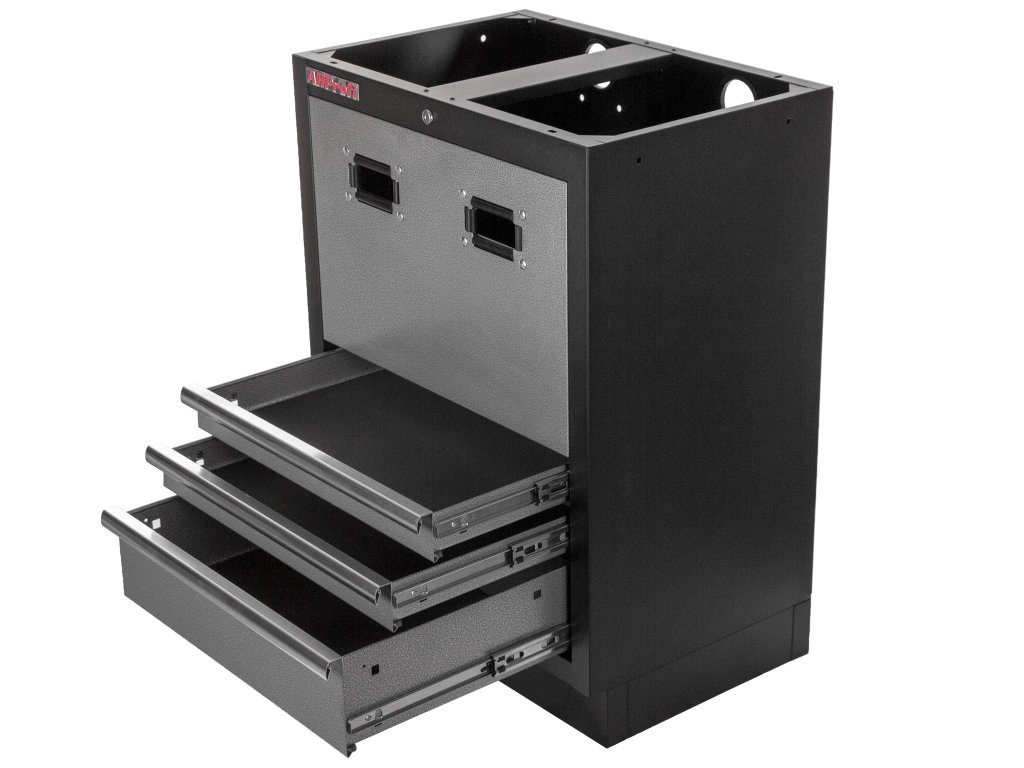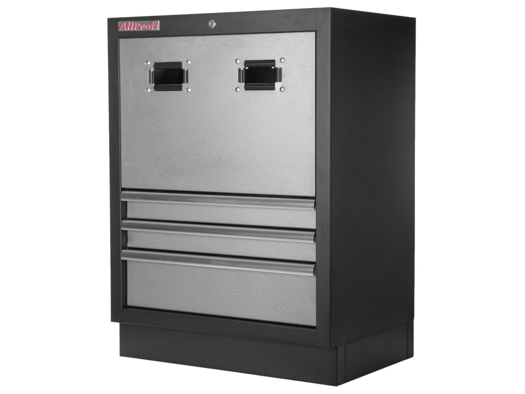 Celokovová skříňka pro samonavíjecí bubny, 3 zásuvky, uzamykatelné, rozměry 680x458x910 mm.