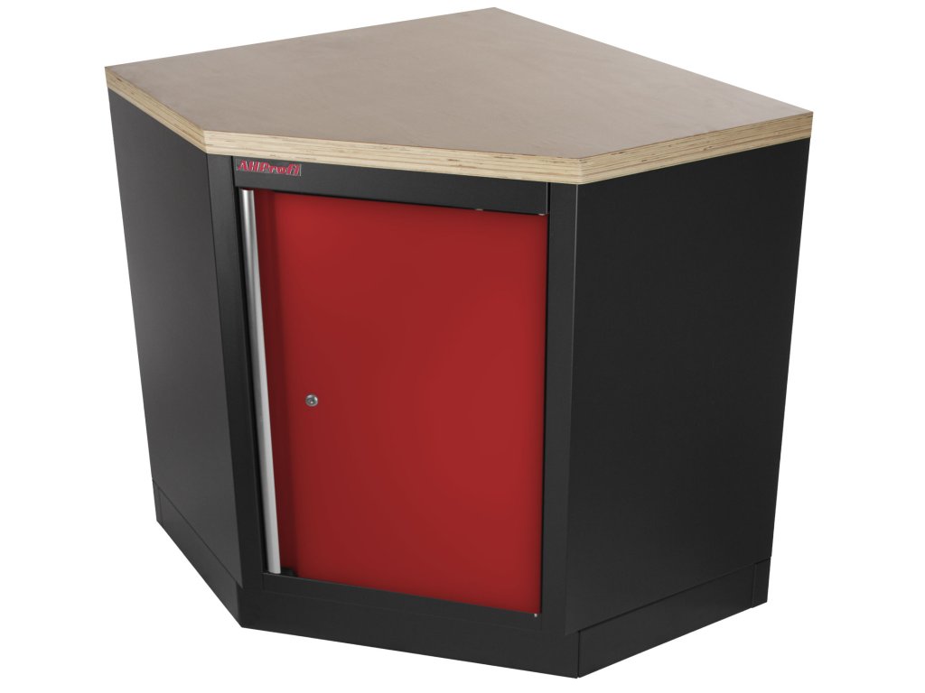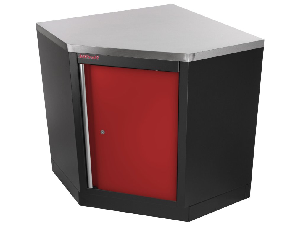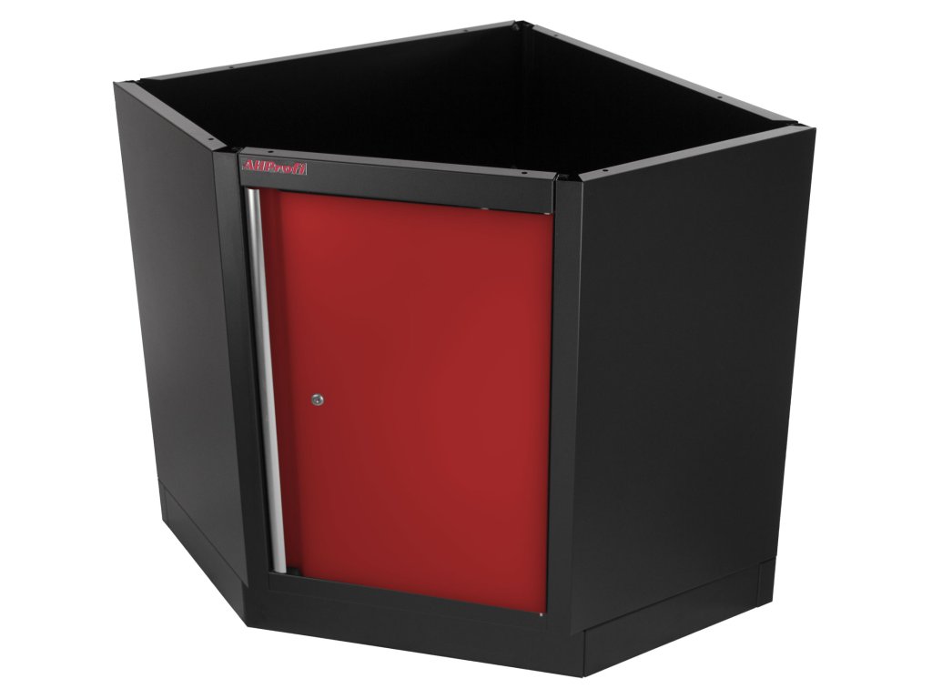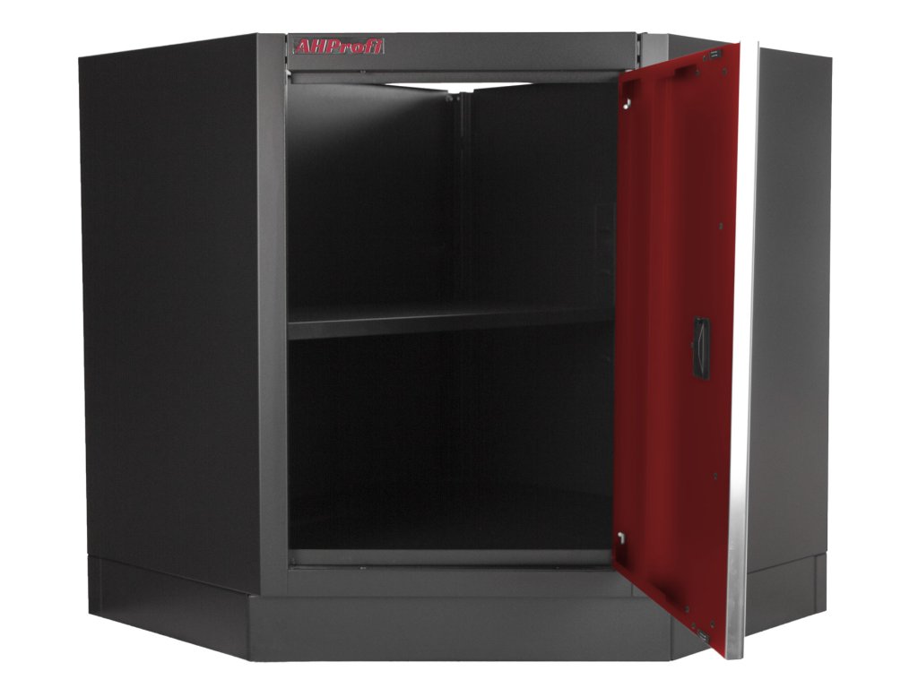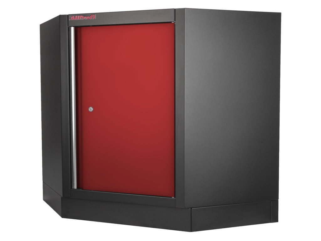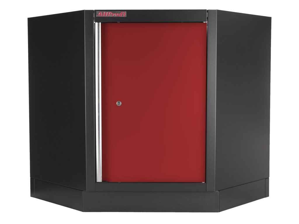 Celokovová rohová PROFI RED dílenská jednokřídlá skříňka. Skříňka je vhodná do profesionálních servisů, dílen, ale také do garáží pro uskladnění širokého sortimentu zboží i ručního nářadí, na které se pak nepráší a snáze se udrží přehledně uklizené na správném místě. Tato skříňka a potažmo celá rohová sestava Vám dává možnost maximálně využít prostor v garáži, domácí dílně i profi dílně a navíc parádně vypadá.