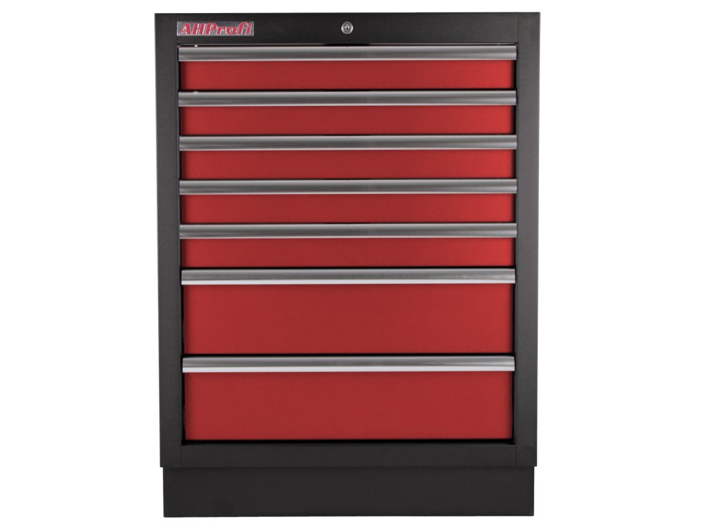 Celokovová PROFI dílenská skříňka s 7-mi zásuvkami je vhodná do profesionálních servisů, dílen, ale také do garáží pro uskladnění širokého sortimentu zboží i ručního nářadí, na které se pak nepráší a snáze se udrží přehledně uklizené na správném místě.