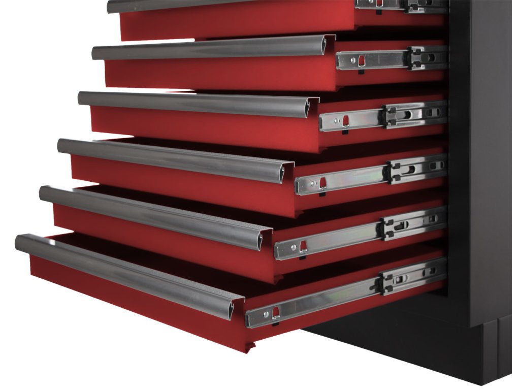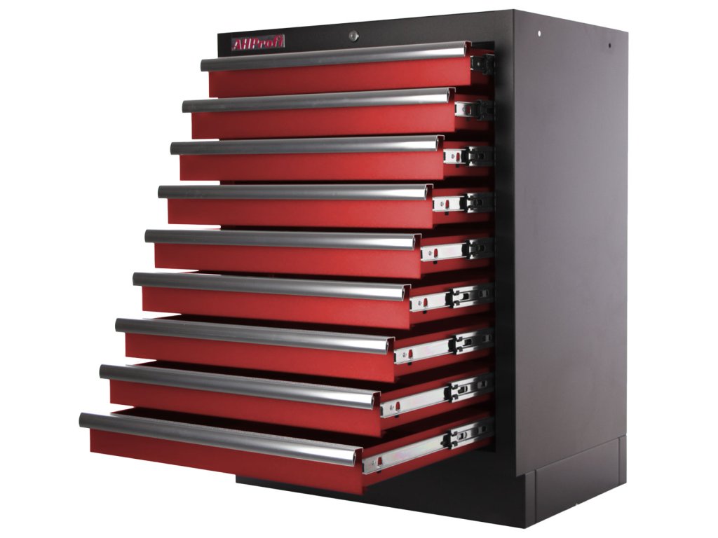 Celokovová PROFI dílenská skříňka s 9-ti zásuvkami je vhodná do profesionálních servisů, dílen, ale také do garáží pro uskladnění širokého sortimentu zboží i ručního nářadí, na které se pak nepráší a snáze se udrží přehledně uklizené na správném místě.