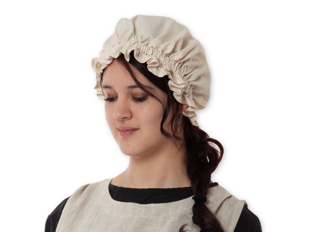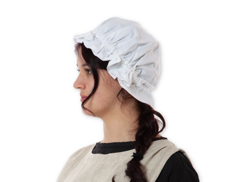 Středověký čepec z tenké balněné látky. Skvělý doplněk dámského středověkého kostýmu. Velikost je univerzální, díky pružnému lemu snadno sedne na každou hlavu. K mání v několika barvách. Více o použitém materiálu se dočtete zde: popis materiálů.