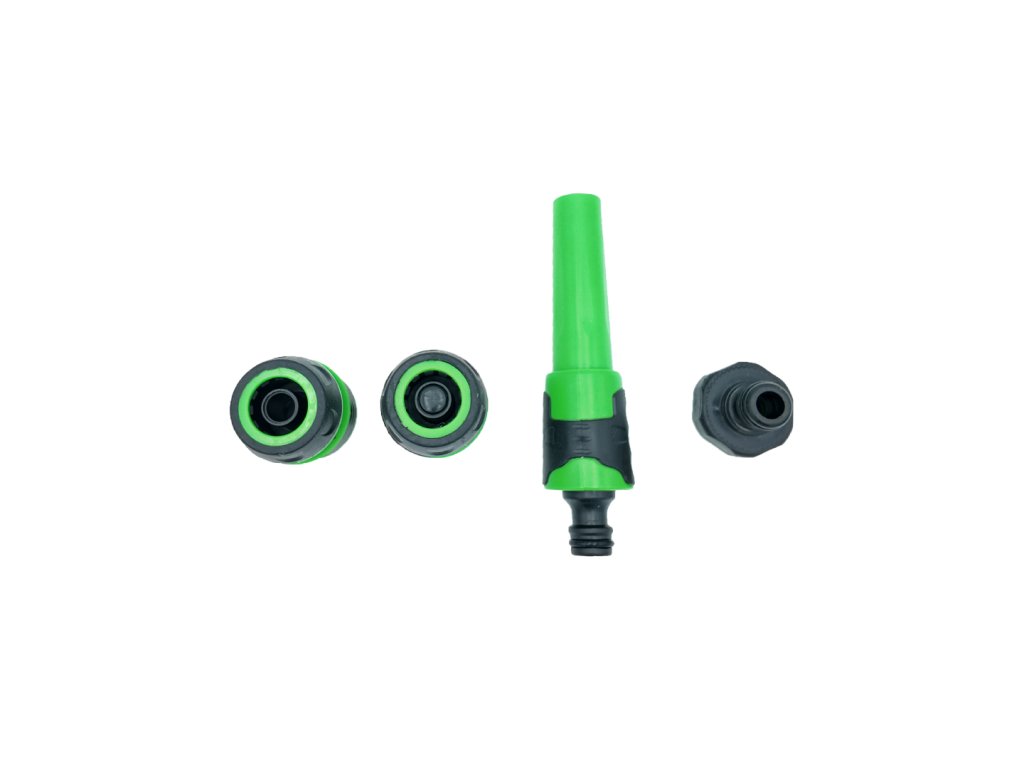 Příslušenství: Sada obsahuje dvě rychlospojky, přípojku, trysku a držak na hadice.