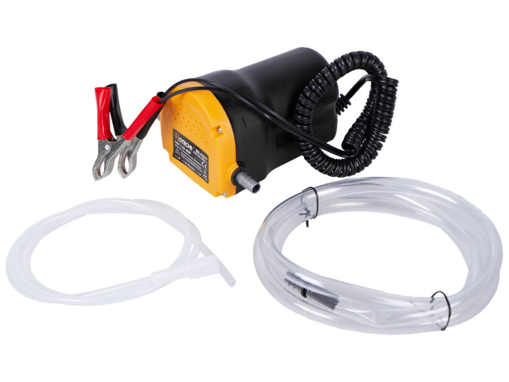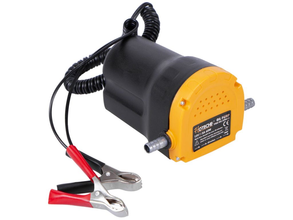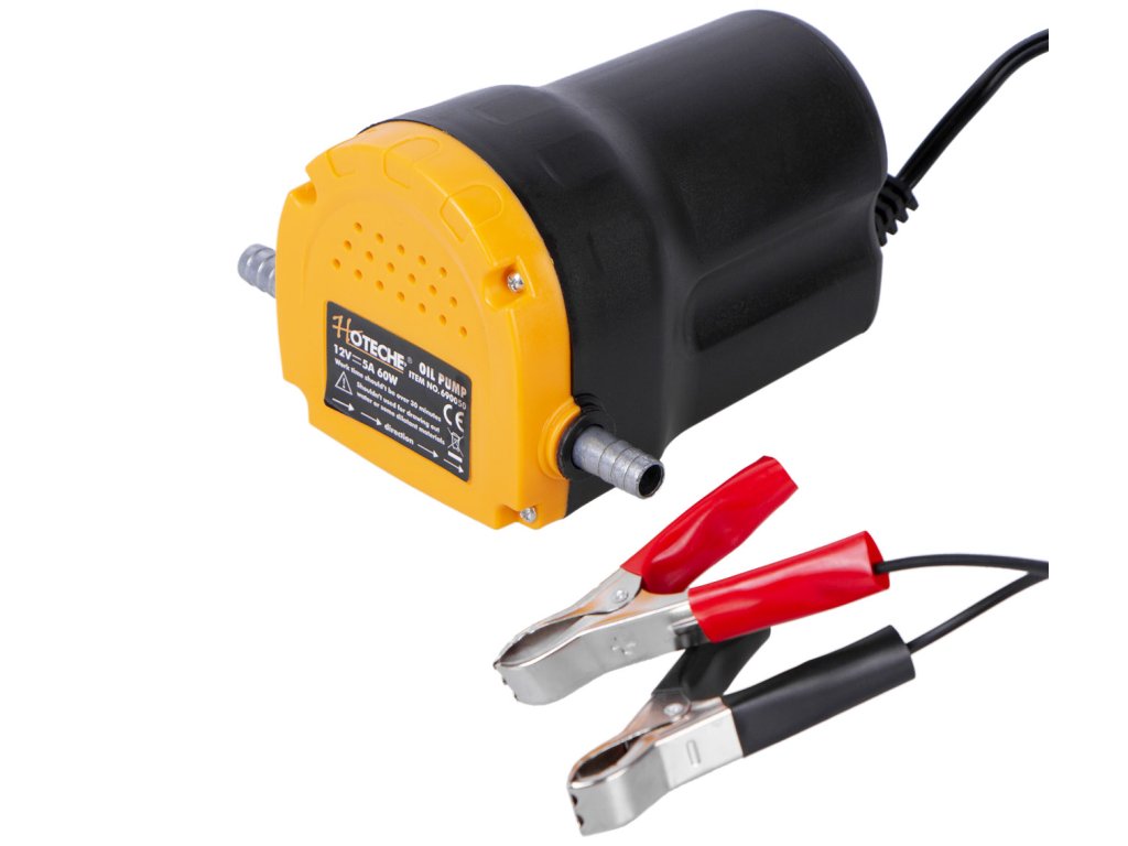 Elektrické čerpadlo na olej s napětím 12 V pro rychlé a snadné čerpání nafty nebo motorového oleje. Napájení 12V pomocí svorek, ideální k připojení na autobaterii.
