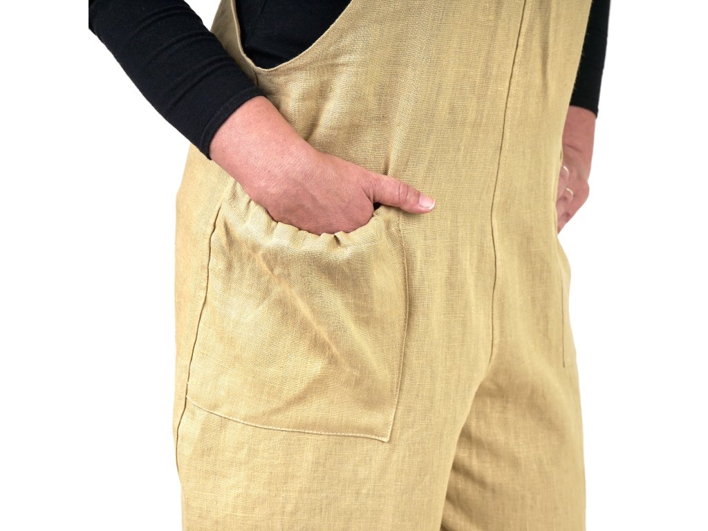 Dámské lněné kalhoty s laclem - pískové - Velikost: S
