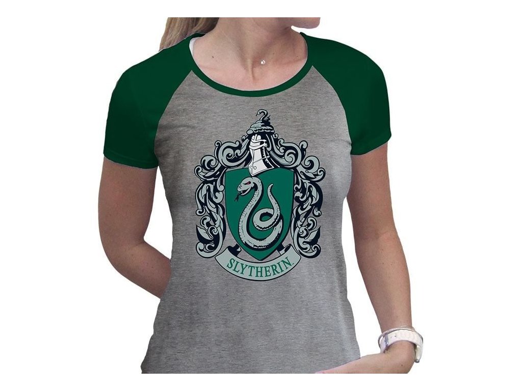 Kdo si hřeje zmijozelského hada na prsou, nemusí nutně provozovat černou magii! Stačí si pořídit slušivé šedozelené tričko s erbem zmijozelské koleje na Škole čar a kouzel v Bradavicích!