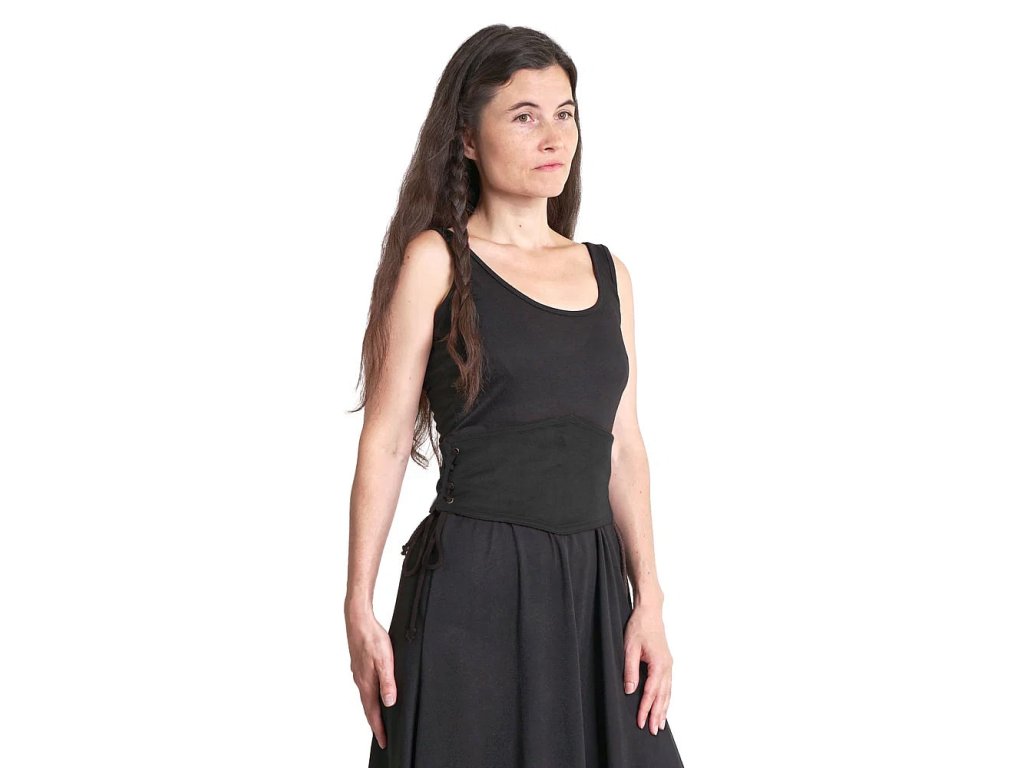 Úzký korzet využijete nejen jako jedinečný doplněk k historickému kostýmu, ale také pro běžné nošení. Hodí se jak k šatům, sukni či k halence. Záleží jen na vás, zda vyrazíte do boje jako Elfí bojovnice nebo si korzetem ozdobíte svůj outfit do práce či do školy. Díky jedinečnému střihu korzet nádherně podtrhne vaši postavu a nechá vyniknout nejen vaše křivky, ale také celý outfit, který zvolíte. Úzký korzet je ušitý ze scuby a nabízíme jej ve dvou velikostech. Díky bočnímu šněrování se krásné přizpůsobí vašim křivkám. Zapínání korzetu je řešeno pomocí čtyř kovových háčků, které jsou elegantně ukryty pod látkou na zadní straně. Úzký korzet šijeme ve čtyřech barvách: černý, vínový, hnědý, zelený.