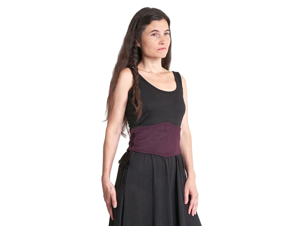 Úzký korzet je jedinečným doplňkem nejen k historickému kostýmu, ale perfektně se vám bude hodit i pro běžné nošení. Korzet nádherně podtrhne vaši postavu a nechá vyniknout nejen vaše křivky, ale také celý outfit, který zvolíte. Ať už se chystáte do boje, na sběr lesních bobulí či do práce nebo do školy. Úzký korzet je ušitý ze scuby a nabízíme jej ve dvou velikostech. Díky bočnímu šněrování se krásné přizpůsobí vašim křivkám. Zapínání korzetu je řešeno pomocí čtyř kovových háčků, které jsou elegantně ukryty pod látkou na zadní straně. Vybrat si můžeme ze čtyř barev: vínový, hnědý, zelený, černý.