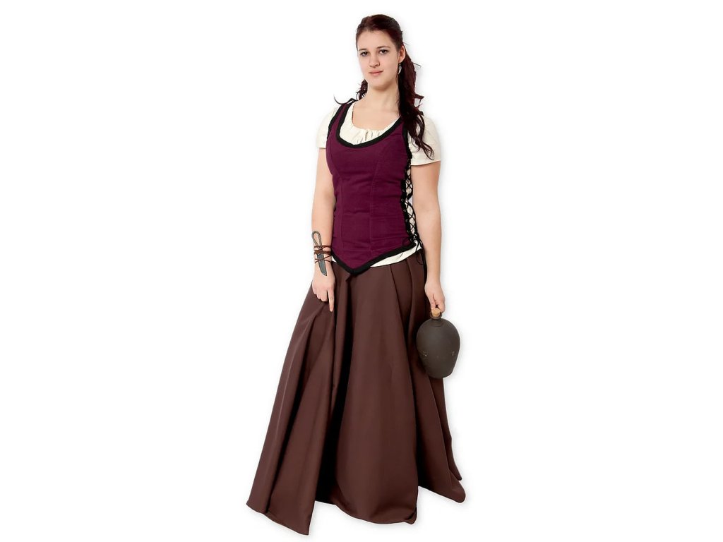 Elegantní dámský živůtek ze scuby (broušený semiš) tvoří základ každého historického kostýmu elfí bojovnice či královny. Dámský živůtek rozhodně můžete využít bez obav i pro běžné nošení. Nechte vyniknout své přednosti a dejte na obdiv svůj jedinečný styl. Chystáte se na LARP? S dlouhou sukní, halenkou a živůtkem od našich švadlenek vytvoříte půvabnou kombinaci. Pro běžné nošení dámský živůtek krásně vynikne například v kombinaci s lněnou sukní, kterou šijeme ve více barvách. Díky jedinečnému střihu a bočnímu šněrování, se dámský živůtek přizpůsobí každé ženské postavě. Vězte, že kolemjdoucí dámy budou tiše závidět a pánové obdivovat. Nepřehlédněte i nabídku našich kožených opasků, taštic a váčků, které nejen váš kostým, ale celý outfit dovedou k dokonalosti. Dámský živůtek šijeme ve čtyřech barvách: vínový, hnědý, zelený a černý.