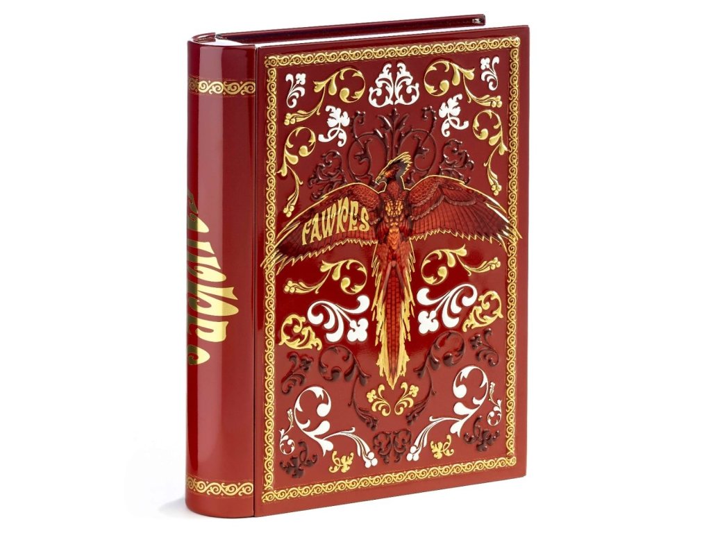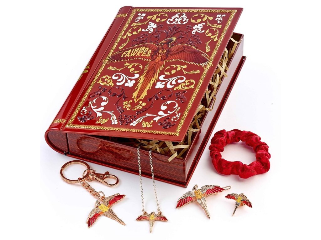 Krásná dárková sada má podobu kovové knihy s Fawkesem, fénixem profesora Albuse Brumbála z bradavické školy čar a kouzel. Uvnitř originální pokladničky najdete poklady ze světa Harry Pottera jako jsou gumička do vlasů, klíčenka odznak nebo náhrdelník! Jedinečný dárek pro malé i velké fanynky kouzelníků z magického světa J. K. Rowlingové.