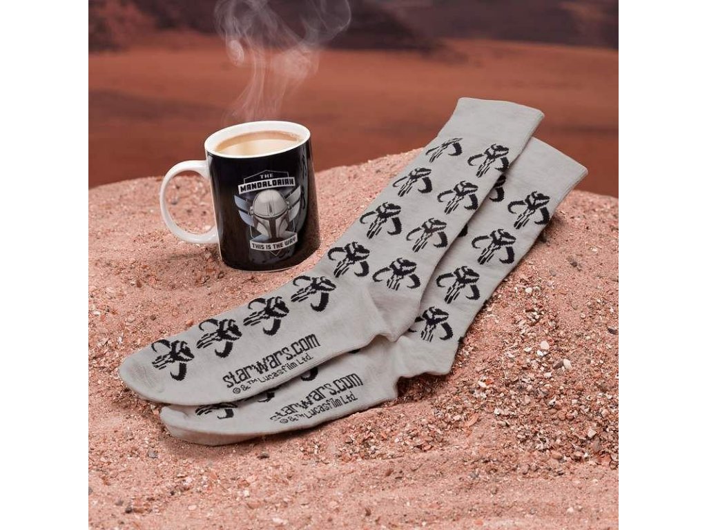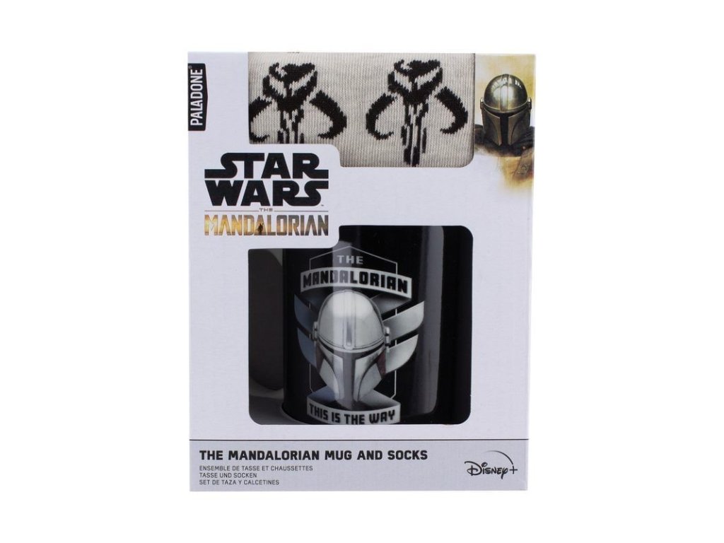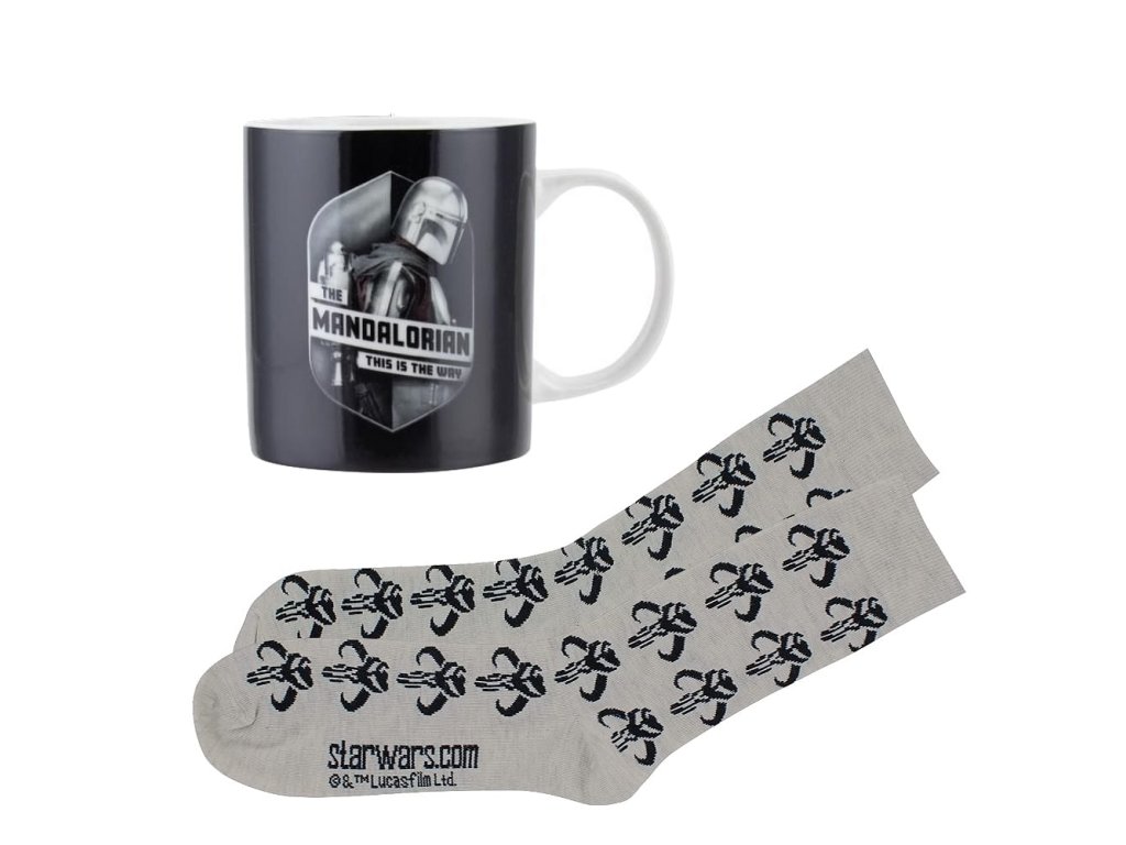 Dárková sada pro příznivce seriálu The Mandalorian ze světa Star Wars - Hvězdných válek v sobě ukrývá slušivé ponožky a keramický hrnek s nápisem This is the Way - Tohle je cesta . Ponožky mají univerzální velikost (EU 41-46, UK 7-11). Hrnek je vhodný do mikrovlnky a myčky nádobí.