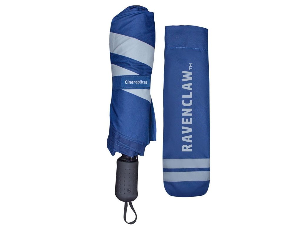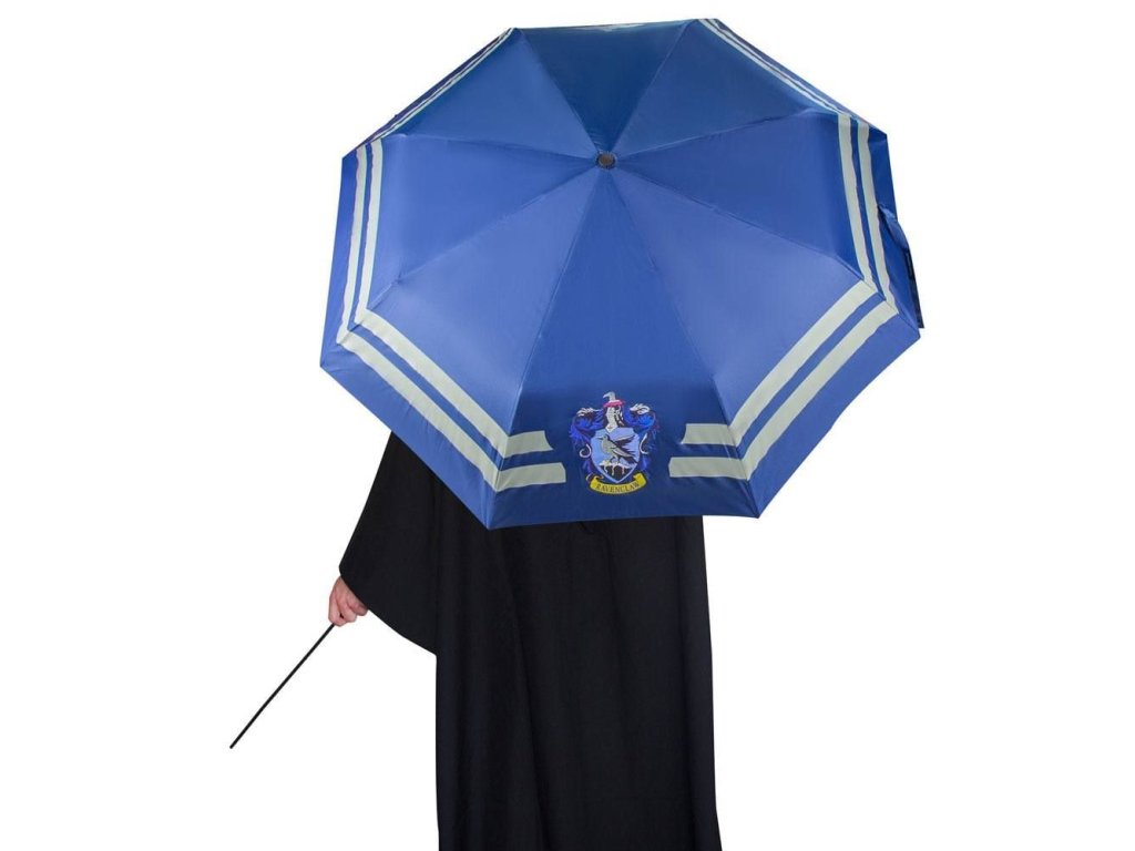 Skvělý stylový modrý čarodějnický deštník se znakem koleje Havraspár na škole čar a kouzel v Bradavicích, podle příběhů o Harry Potterovi.