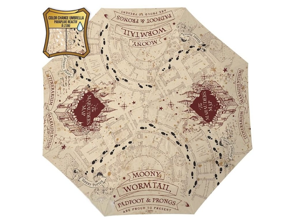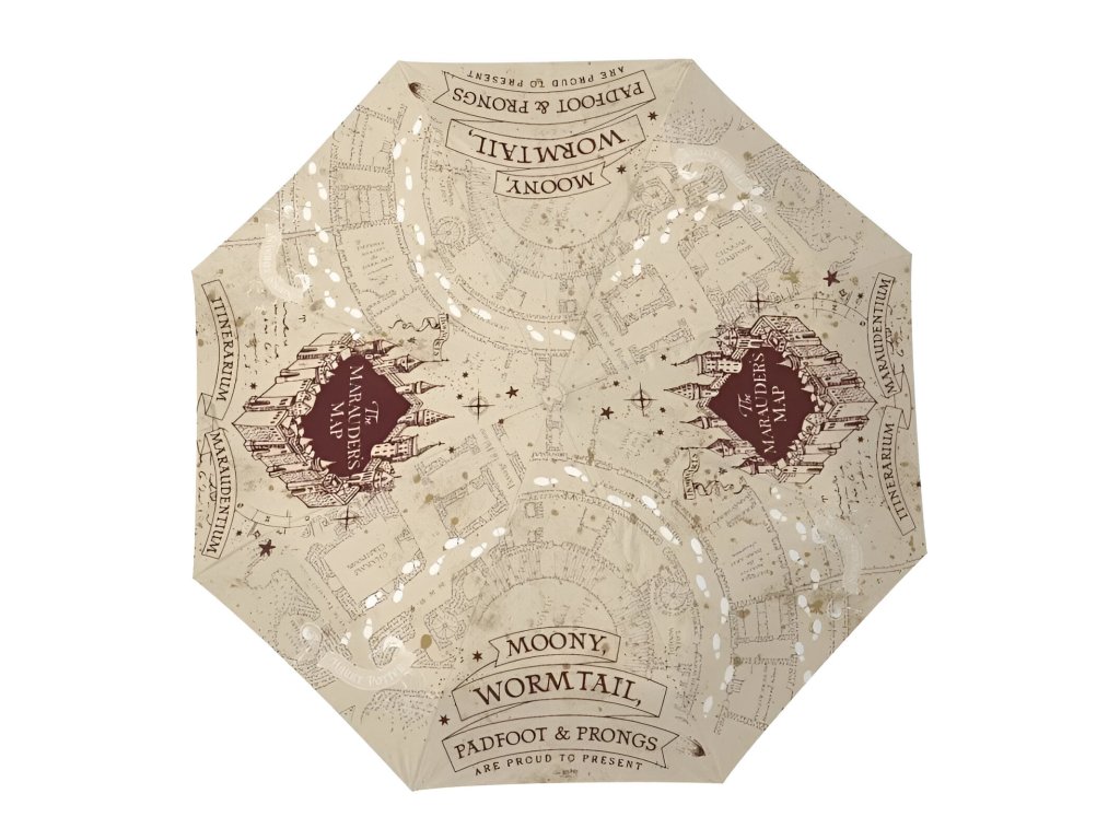 Chraň se před deštěm spolu s deštníkem pro milovníky Harryho Pottera, který zdobí Pobertův plánek. Až začne pršet, dávej dobrý pozor, na mapě se objeví dosud skryté stopy! Deštník má automatické otevírání za pomoci tlačítka a nachází se ve stylovém pouzdru. Složený deštník má rozměry 30 x 6 cm, otevřený průměr 96 cm.