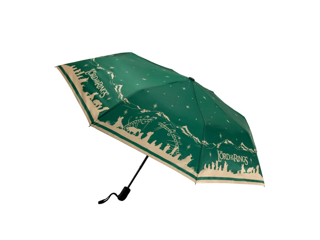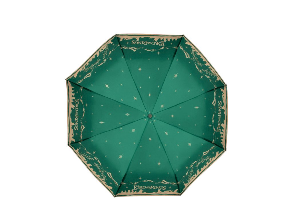 Vydej se na cestu skrz mlhy, déšť i Mordor stylově vybaven – s deštníkem inspirovaným Společenstvem prstenu. Silueta všech devíti členů Společenstva na hřebeni deštníku vytváří epický vizuální efekt, který ocení každý fanoušek ságy J. R. R. Tolkiena. Tento skládací deštník je ideální parťák do nevyzpytatelného počasí, ať už tě čeká cesta do práce nebo výprava na festival. Pevná konstrukce, automatické otevírání a voděodolný potisk z něj dělají funkční i stylový doplněk do sbírky každého milovníka fantasy.
