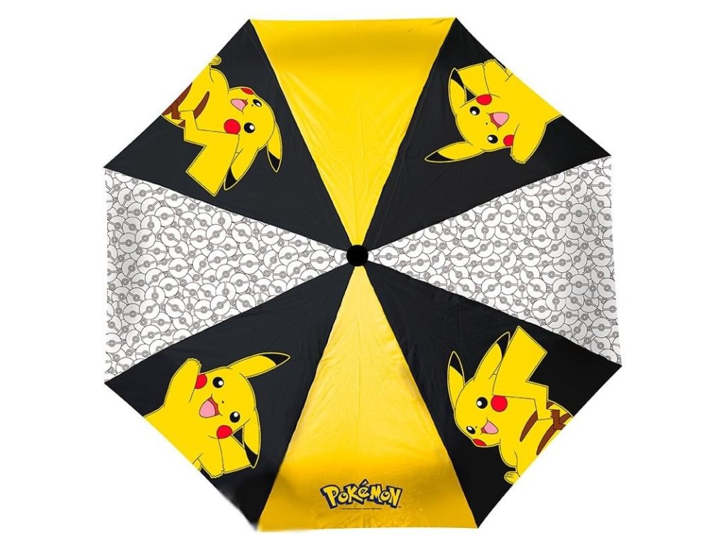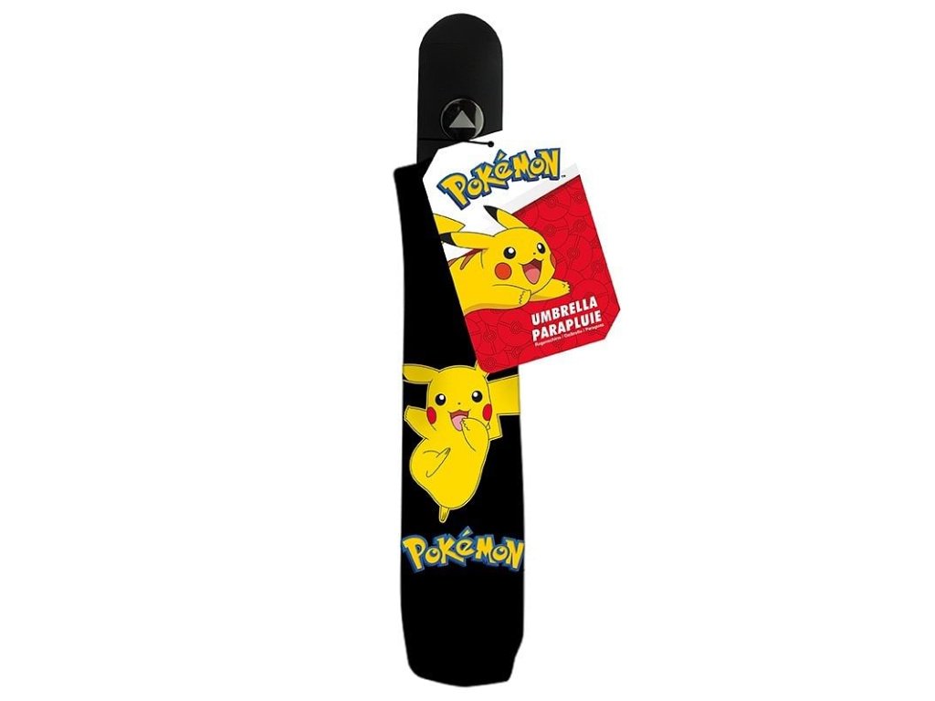 Vystřelovací deštník pro malé i velké trenéry a sběratele Pokémonů zdobí žlutý Pikachu. Deštník má gumovou rukojeť s tlačítkem pro rozevírání. Složený má rozměry 30 x 6 cm, rozevřený pak 96 cm.