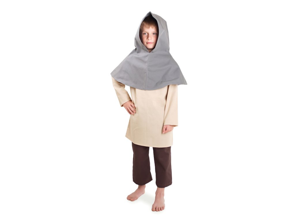 Oblíbily si trilogii o Hobitovi i vaše děti? Ať už se váš prcek chystá na Cestu tam a zase zpátky, za samotným drakem Šmakem nebo jen s kámošem na karneval, jistě ocení kvalitní kápi v hobití velikosti. Dětská kápě Hobit je ušita v naší dílně z pevné bavlněné látky (kepru). Kápě se špičatou kapucí zakrývá nejen hlavu, ale také ramena. Vybrat si můžete ze dvou barev. Hrdina nemusí mít dva metry a hromadu svalů, aby zachránil svět. Stačí mít velké chlupaté nohy, metr dvacet a skvěle padnoucí kostým. Ke kápi se mohou hodit i další součásti hobitího kostýmu pro děti - najdete u nás pláště, kalhoty, vestičky i košile.